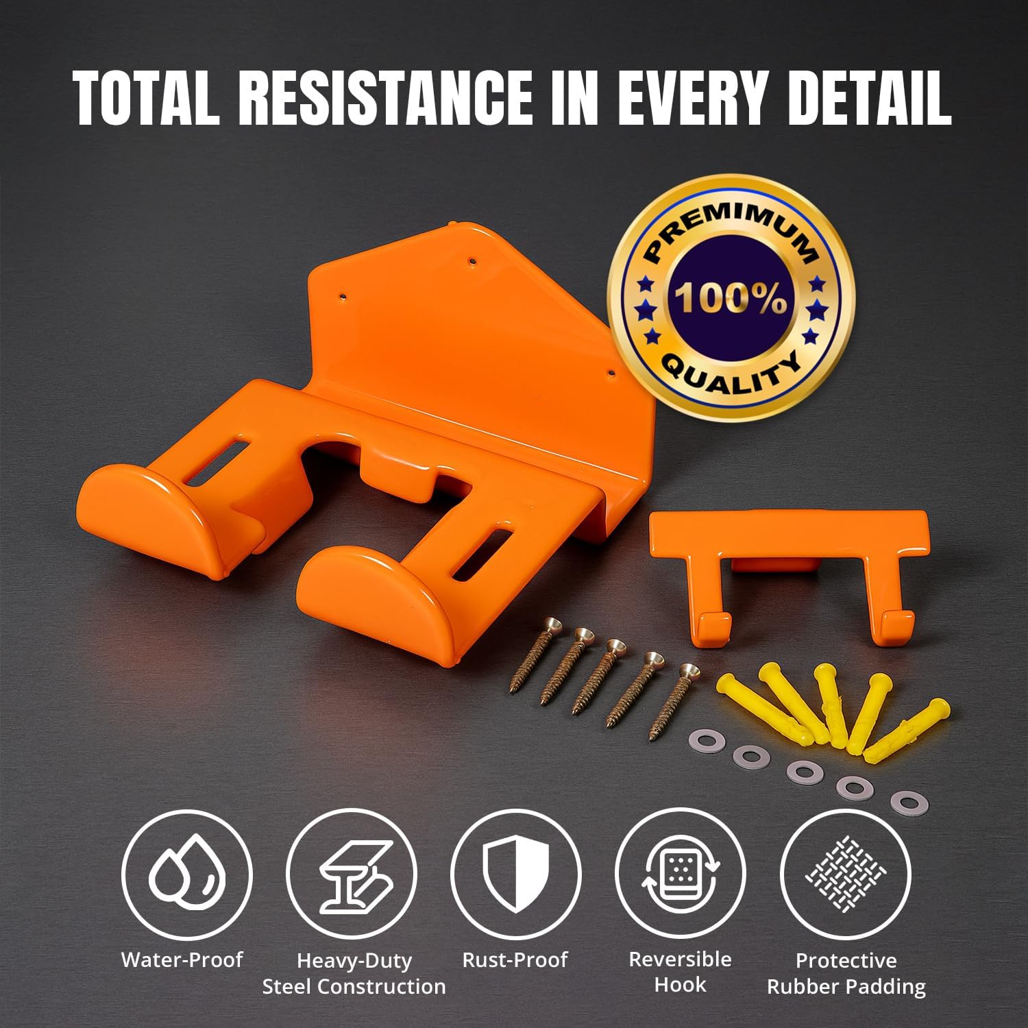 - [ PREMIUM QUALITY ] : Crafted from thick gauge steel for superior strength, this garage organizer is built to last. The orange rubber coating protects against rust, chipping, and cracking—ideal for lawn equipment storage and power tool hanger needs. Smooth edges prevent damage to gear, making it perfect as garage hooks heavy duty, leaf blower hanger, or weed wacker holder for your garage storage system.
