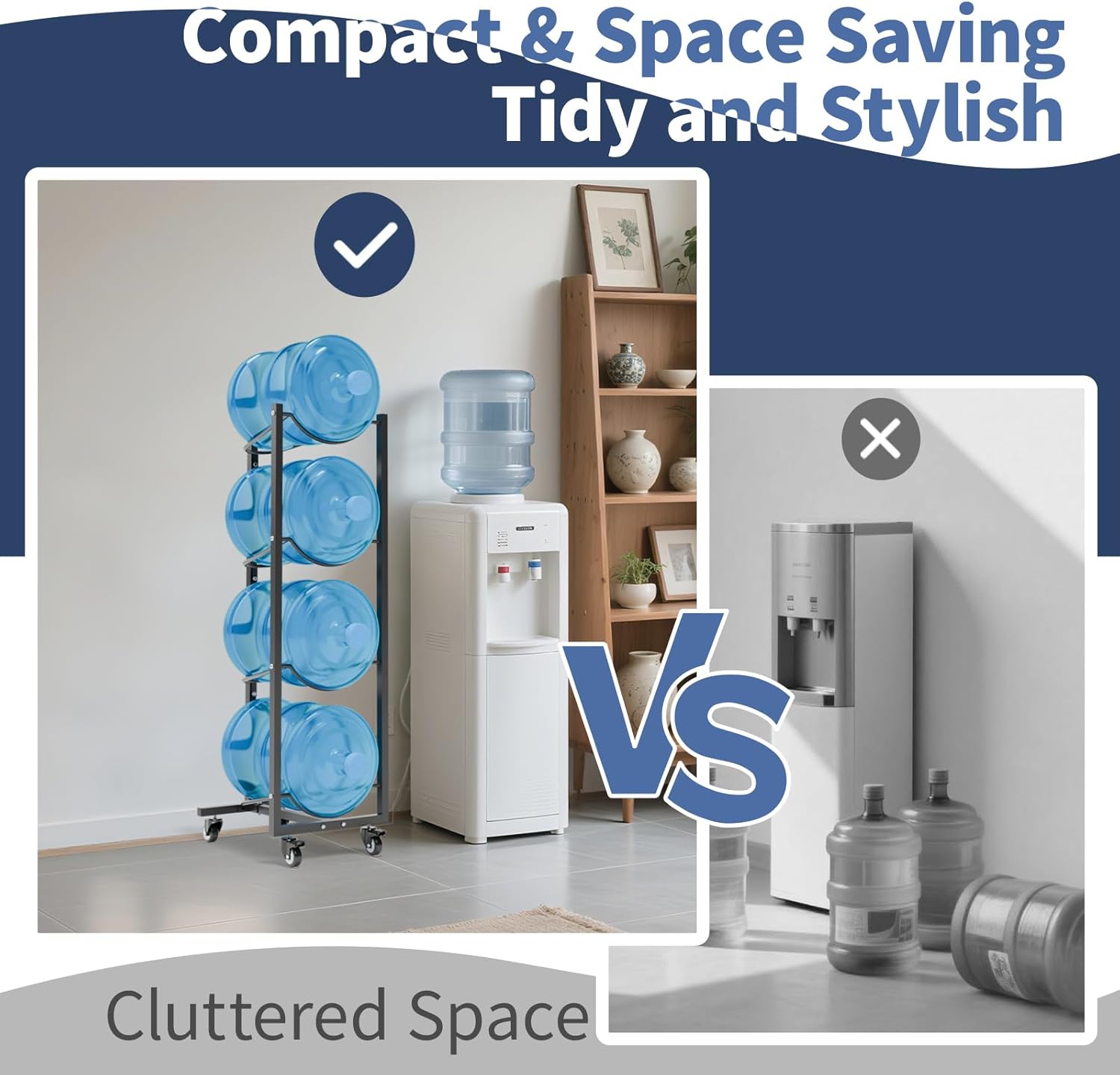 - Save Space: The 4-tier water jug rack is designed to store multiple jugs in a compact footprint, maximizing space efficiency. Its organized design keeps your space tidy and stylish, enhancing aesthetics while reducing clutter.