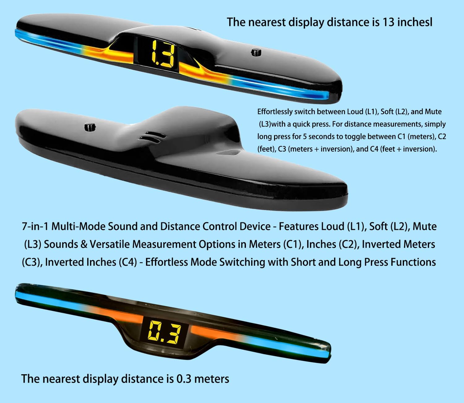 - Reverse Parking Sensor with Front Probe - Maximum Display Distance of 0.6m, 23 Inches (Note: When selecting inch display, decimal points will appear, e.g., 99 inches displays as 9.9)