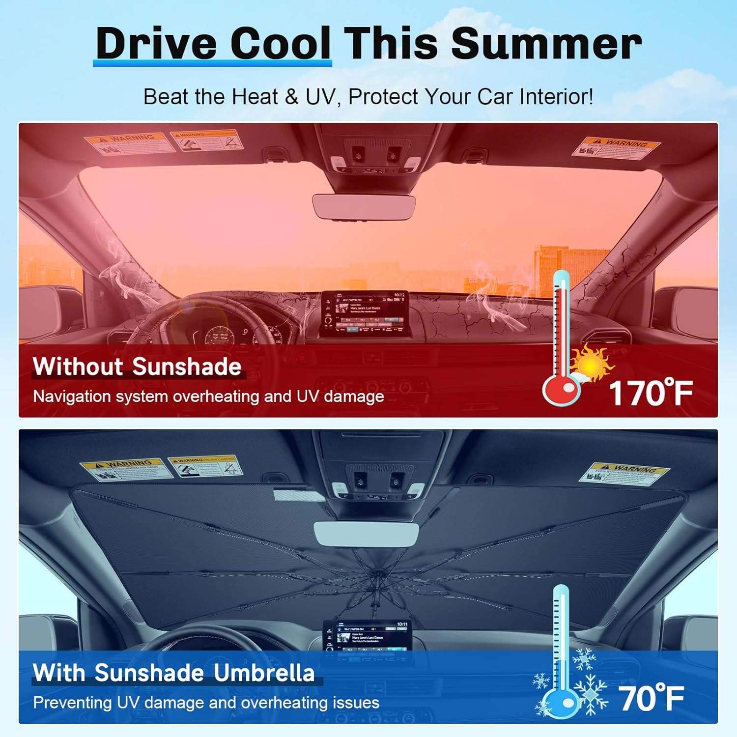 - 1. Sun & Heat Insulation: Windshield Umbrella Sunshade for 2023 2024 2025 Honda Pilot Accessories, 99.9% UV protection, upgraded wrinkle-resistant fabric reflects heat, keeps car cool. Protects interior from fading & cracking, ensuring comfort on hottest days