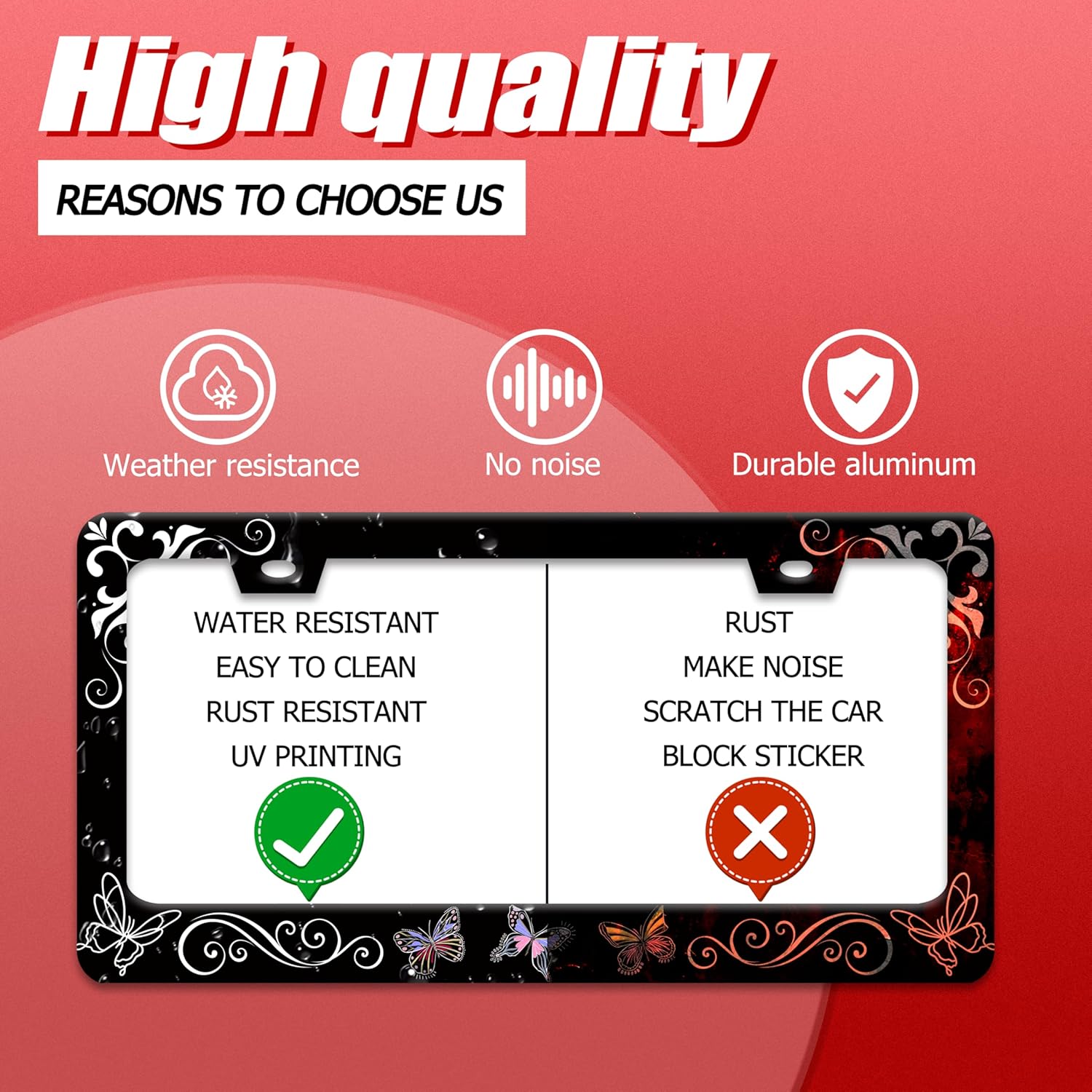 Butterfly License Plate Frame Butterflies Floral License Plate Frames for Car Decorative Parts Stainless Stee License Plate for Standard Us Canada Funny License Plate Holder 12x6 Inch