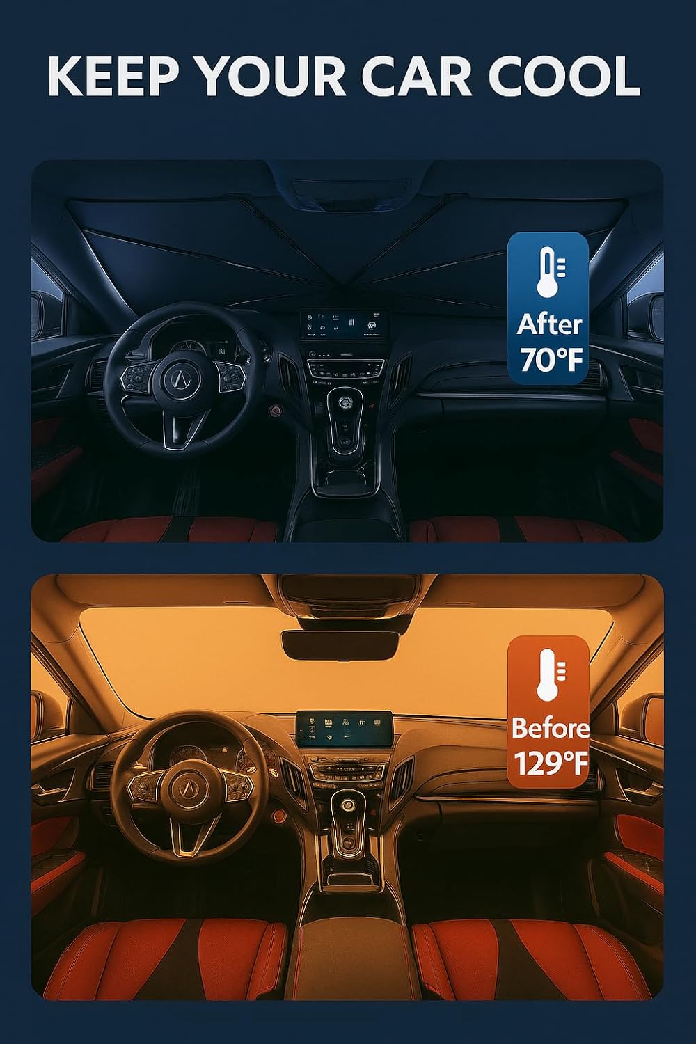 - Certified Sustainable. Customized Windshield Sunshade: Specially designed for the 2019-2025 Acura RDX with precise mirror cutouts, providing 100% shading, carbon fiber handle, ensuring lightweight and durability while also having a fashionable feel. Our RDX windshield sunshade can protect the interior of your car from various light damage and prevent dashboard and seat degradation.