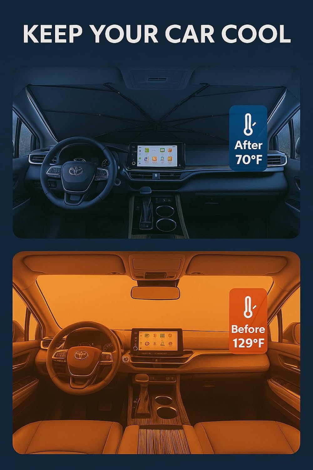 Proadsy Windshield Sun Shade Umbrella for Toyota Sienna 2021-2025 2026 Foldable Car Umbrella Sunshade with Soft TPU Handle Spring Structure Crystal Cooling Material Protect Car from Rays & Heat