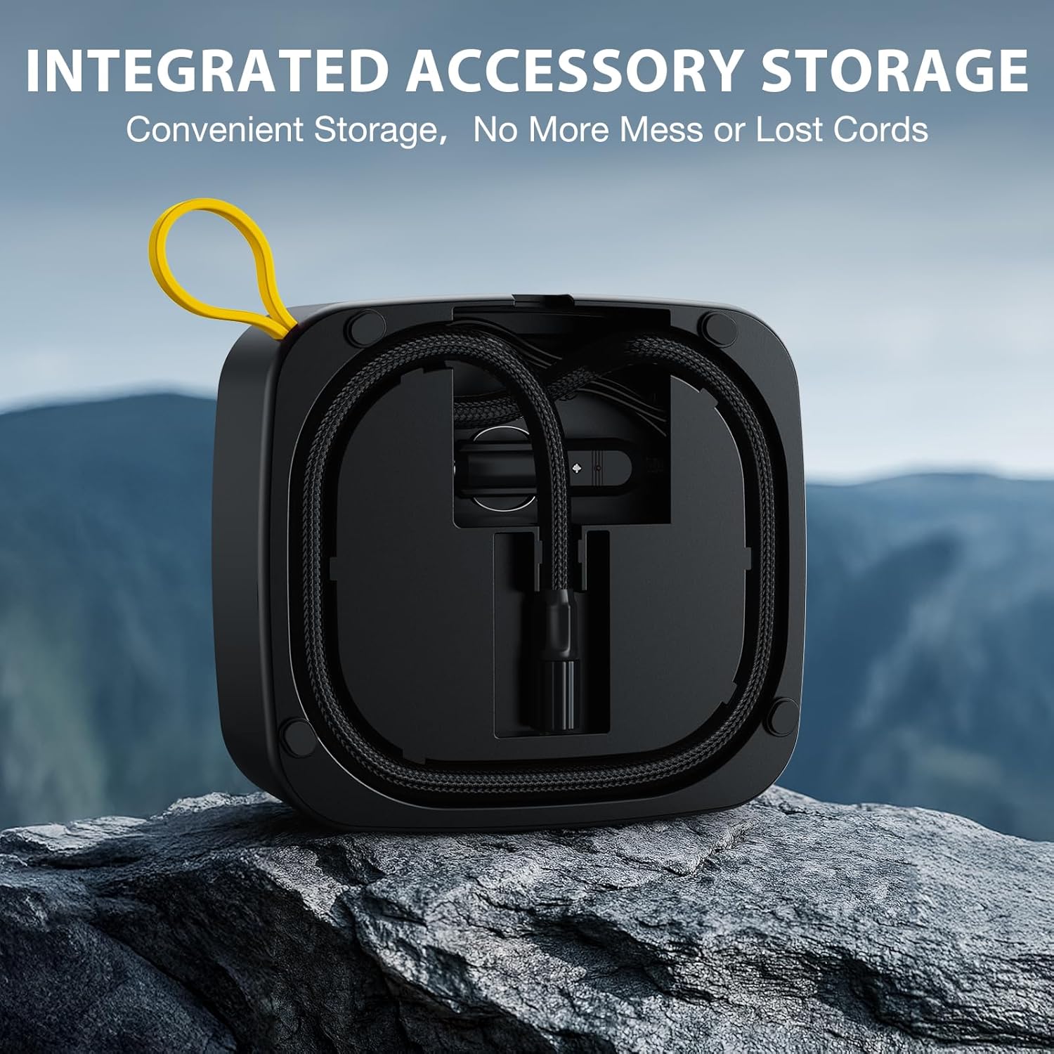 - ULTRA LONG POWER CORD AND COMPACT DESIGN: This car tire inflator is equipped with a 0.5m (1.6 feet) air hose and a 3m (9.8 feet) power cord, making it easy to connect to any tire. The integrated storage compartment on the back facilitates the storage of accessories and makes the tire inflator easier to carry. This convenient design brings a relaxed and easy inflation experience.