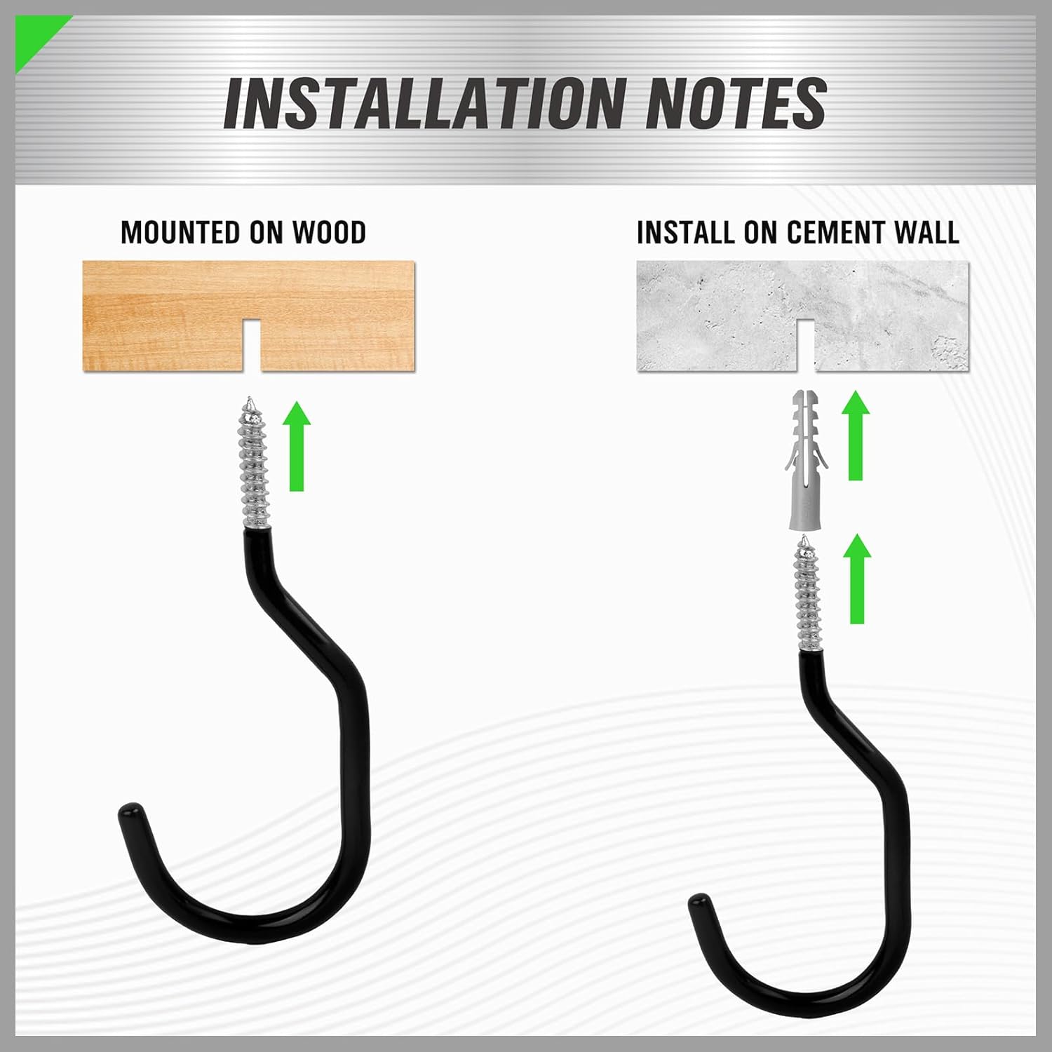 - EASY TO INSTALL AND USE-This 8-pack garage hooks set is ideal for garage organization, bike rack setups, or as part of your garage ceiling storage racks, providing an organized, clutter-free space