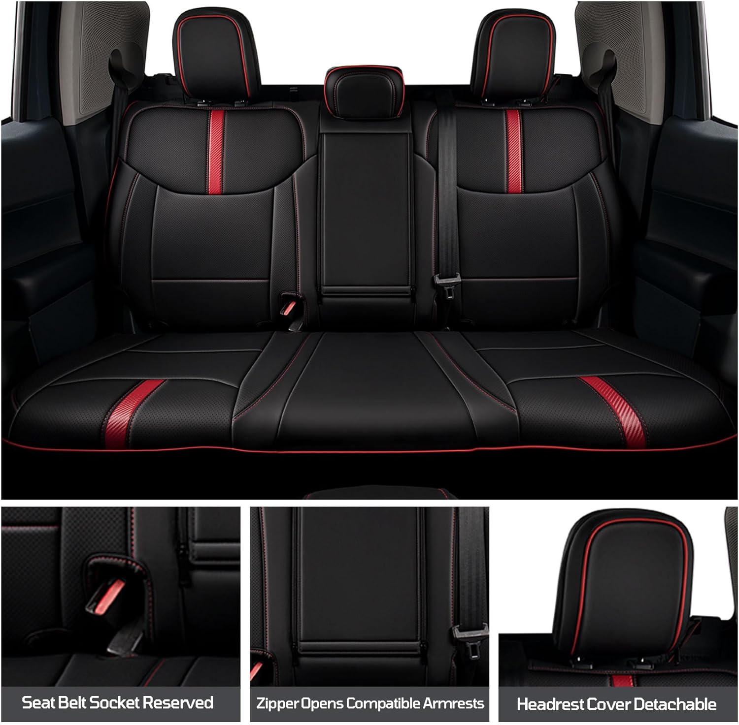Seat Covers Fit for Ford Maverick 2022-2025 Double Cab XL XLT Lariat,Full Coverage Seat Cover Design ,Safety and Comfort Carbon Fiber Car Seat Covers,Airbag Compatible Seat Covers for Cars(Red)