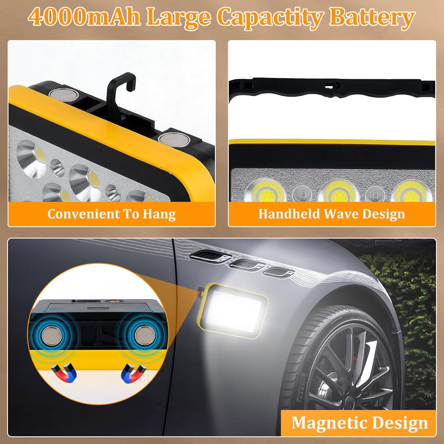 - Magnetic Design & Hanging Capability: With a magnetic attachment function, it can be attached to metal surfaces effortlessly, freeing your hands. Our rechargeable work light can also be hung wherever you need it