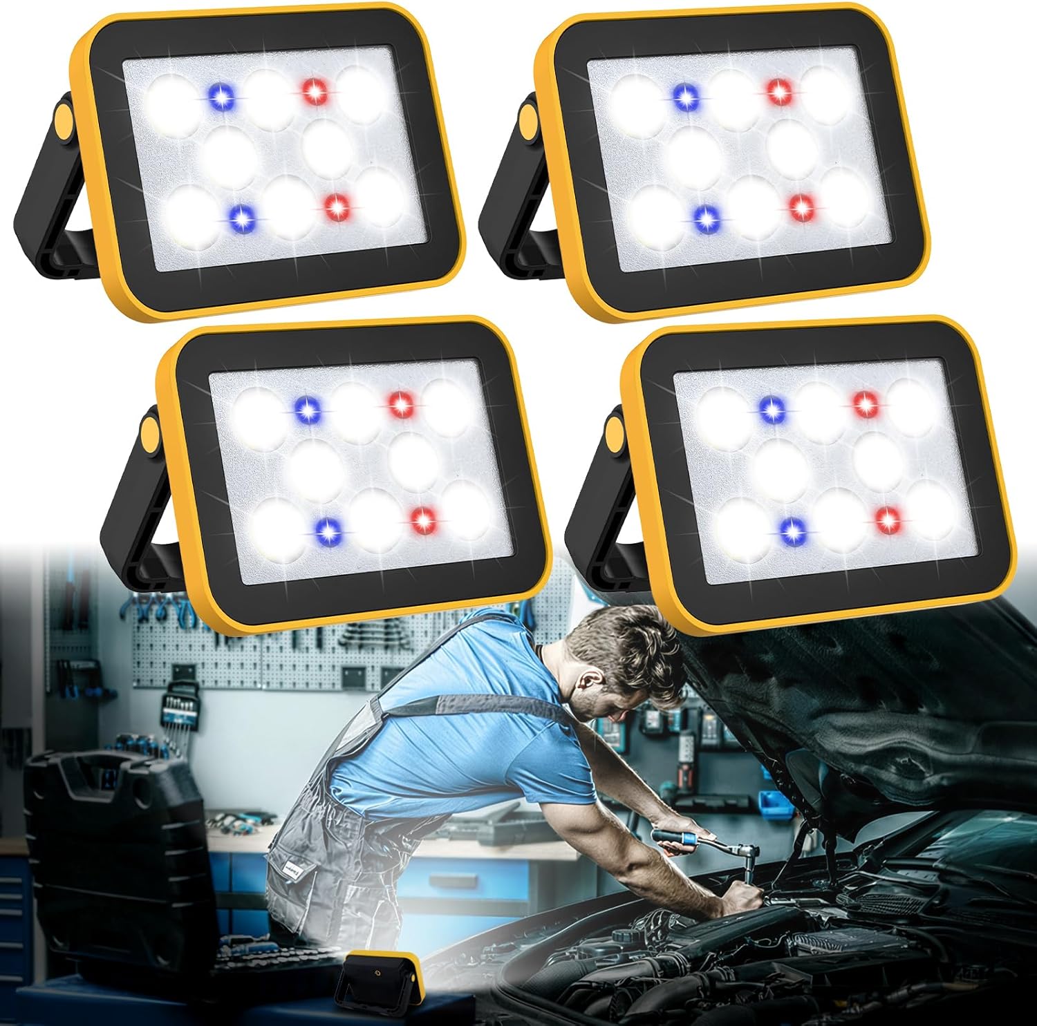 4 Pack Work Light Portable COB LED Super Bright Rechargeable Flood Light Working Lamp Stand USB Cordless Battery Powered Worklight Tool for Outdoor Camping