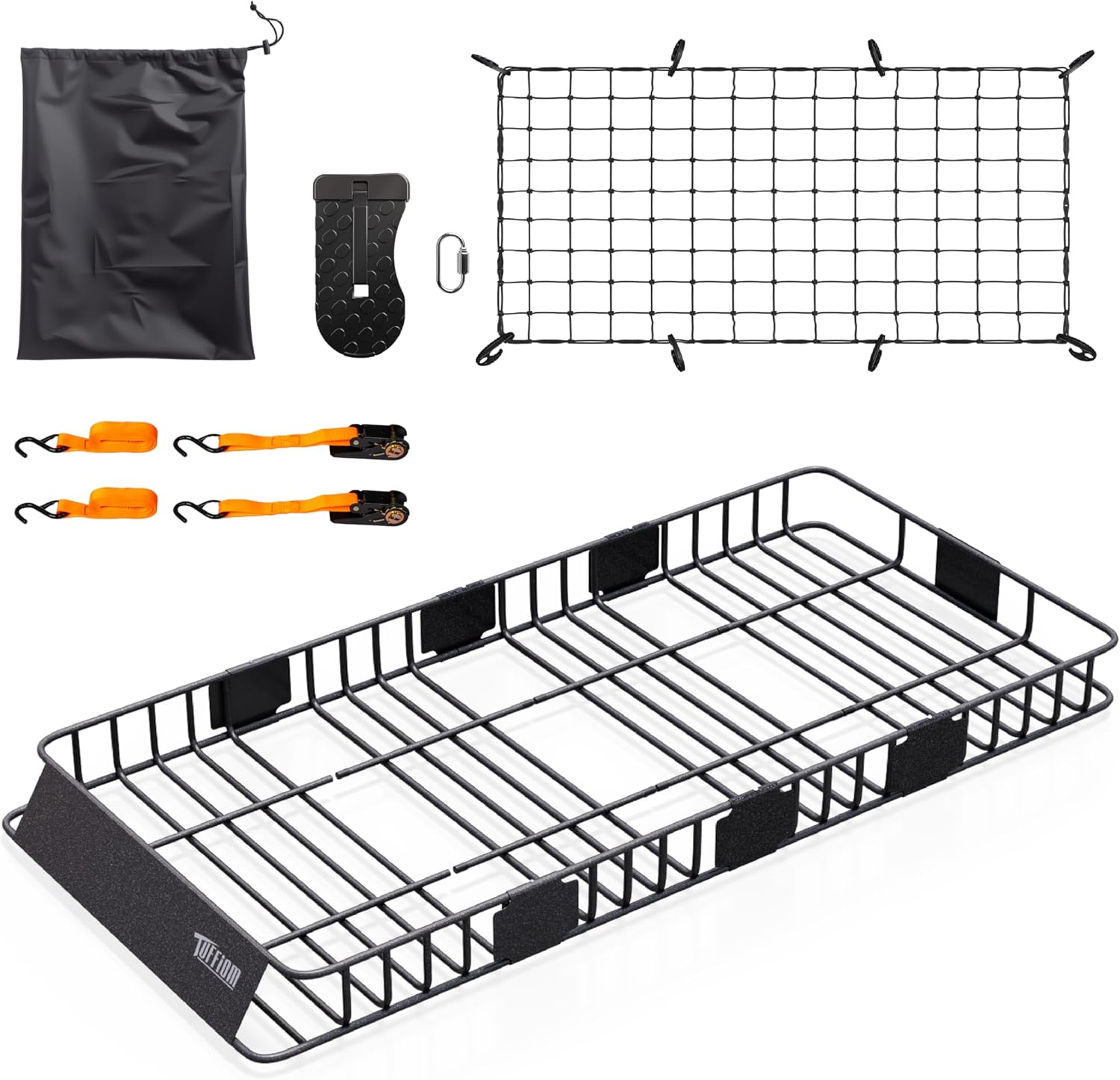 - 【Complete Accessories】It is thoughtfully equipped with a waterproof storage bag for easy storage; an elastic luggage net with hooks, which can flexibly fix items of different shapes and sizes; a pair of hook straps and a pair of ratchet straps and a footrest to further enhance the fixing effect and prevent items from shifting or being damaged during driving.