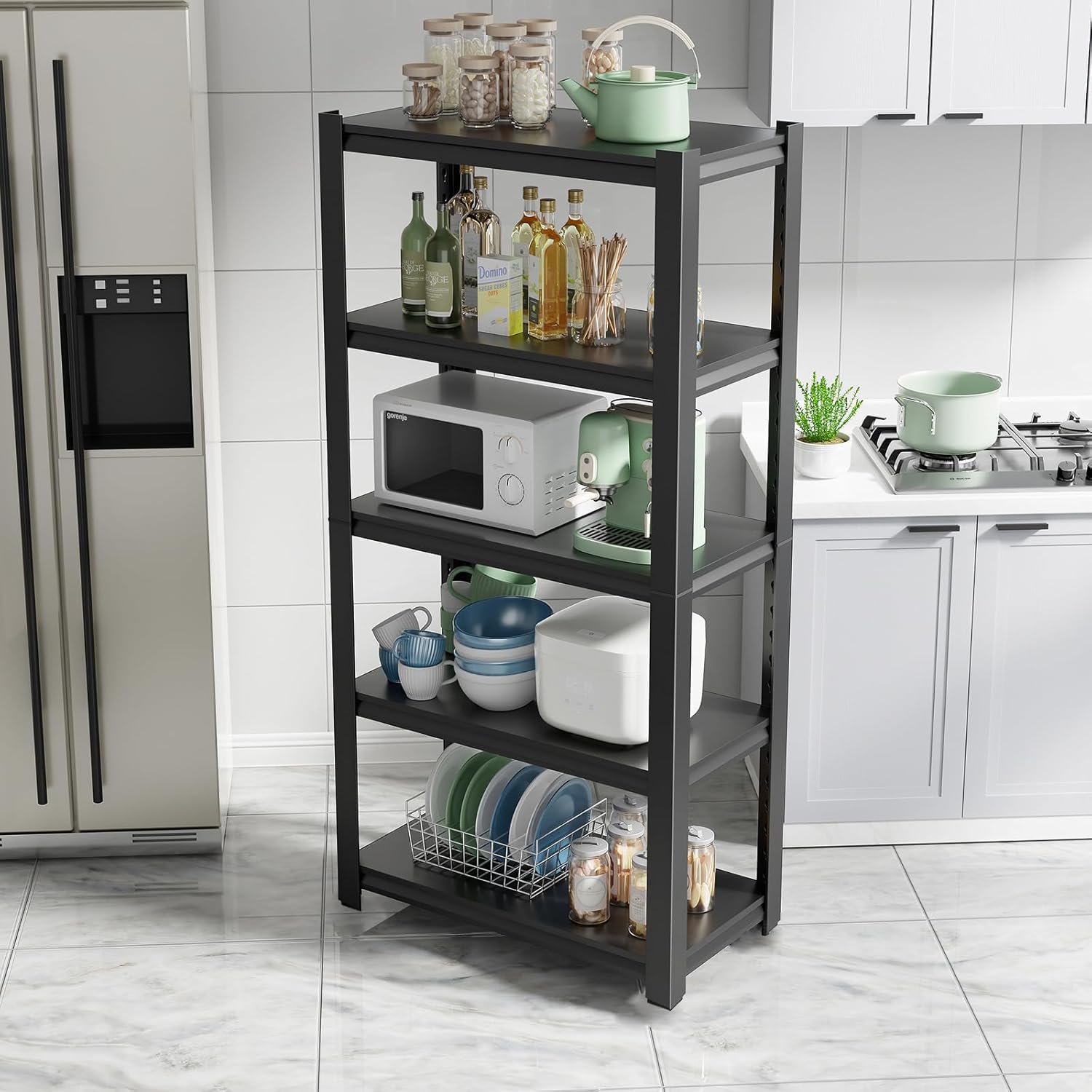 63H Metal Kitchen Storage Shelves, 1600 LBS Heavy Duty Garage Shelving Unit, 5-Tier Adjustable Pantry Shelves, Food and Beverage Storage Rack, Appliance Storage Utility Shelf for Balcony - Black