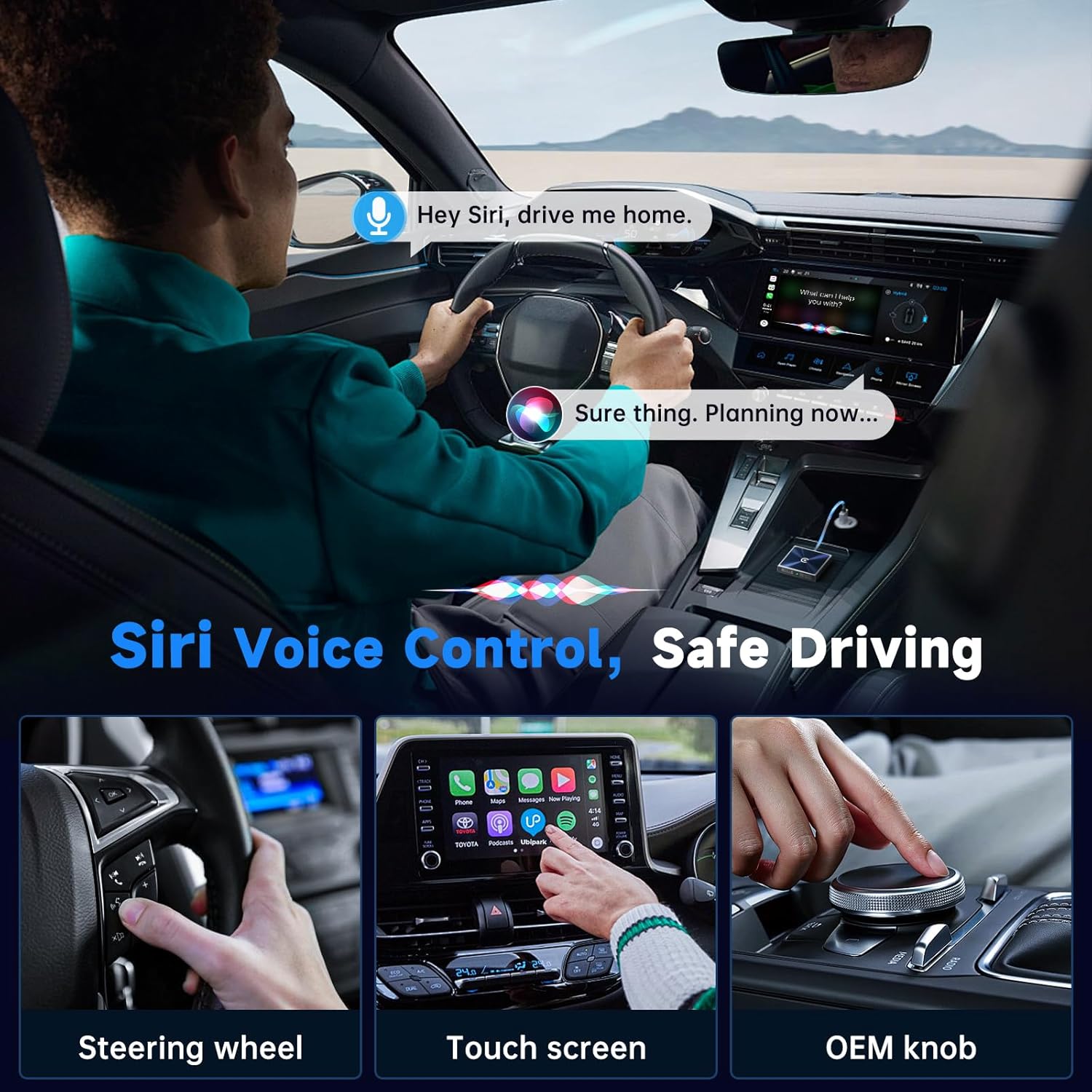 - ✅【Hands-Free Siri Voice Control + Hi-Fi Sound】 Safer driving starts with smarter voice interaction. Use Siri to control maps, play music, send messages, or make calls— hands-free. Wideband response technology enables uncompressed high-fidelity sound, so voice, media, and navigation audio are crystal clear without interference. This Apple CarPlay wireless adapter is fit for drivers who value both convenience and safety.