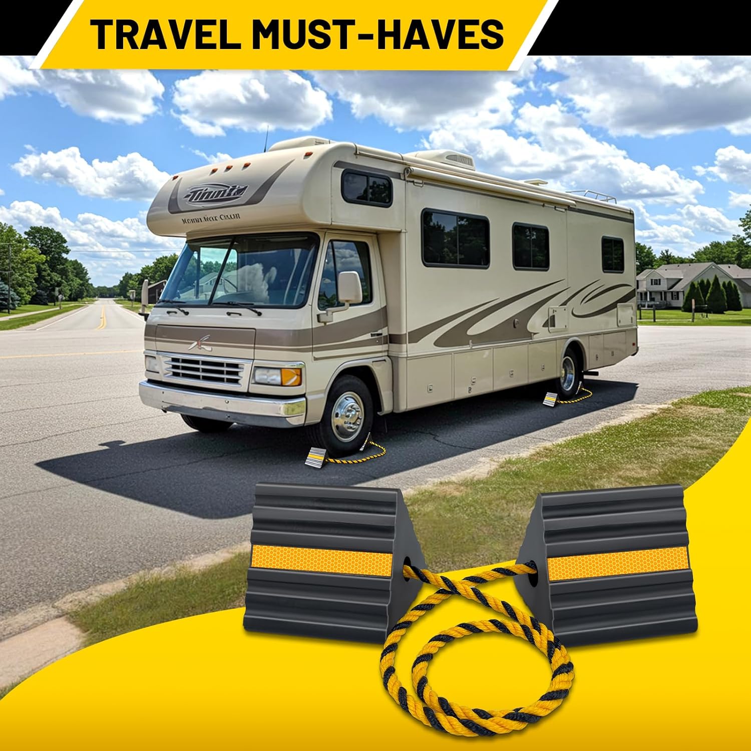 ROBLOCK Rubber Wheel Chocks for RV Trailer Camper Truck Car Aircraft Boat, Versatile Rubber Chocks Block Stopper for Tire with Reflective Strips, Utility RV Accessories, 2pair/4pack