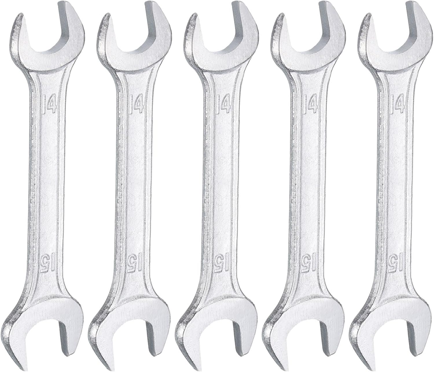 HARFINGTON 5pcs Double Open End Wrench 14mm x 15mm Metric 15 Degree Offset Angle Small Flat Head Wrench Galvanizing Open Ended Spanner for Automotive Repair Furniture Assembly