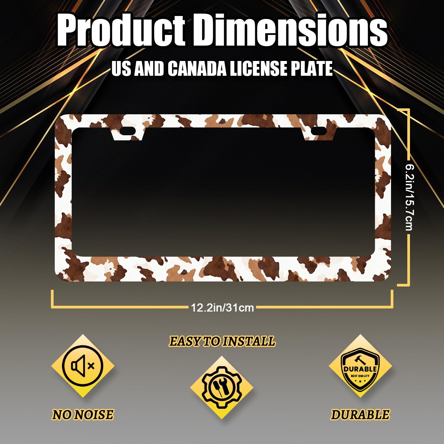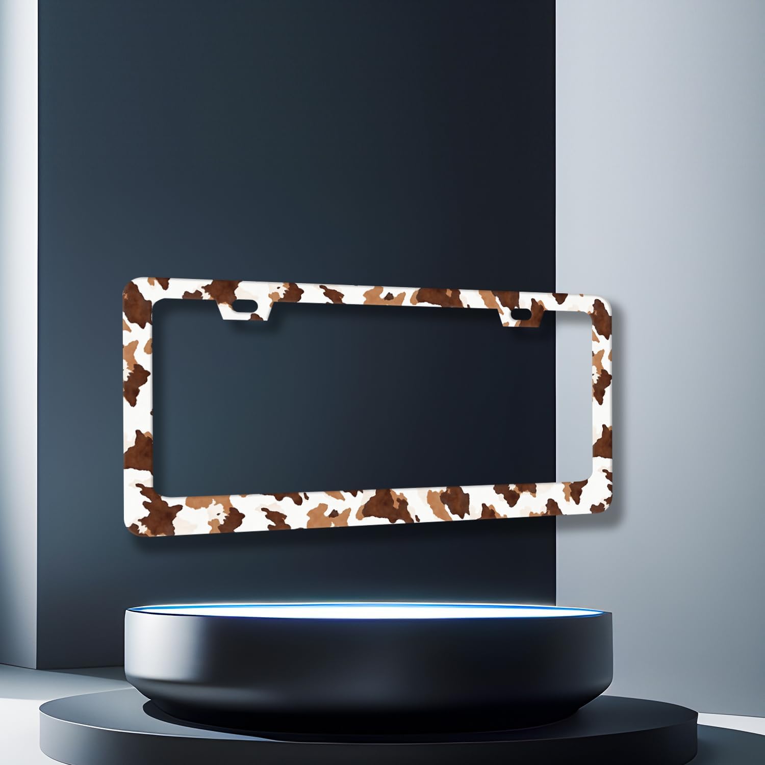Brown White Cows Print License Plate Frame Animals License Plate Holder Stainless Steel Funny Design with 2 Holes and Screws 12.3" x 6.3"