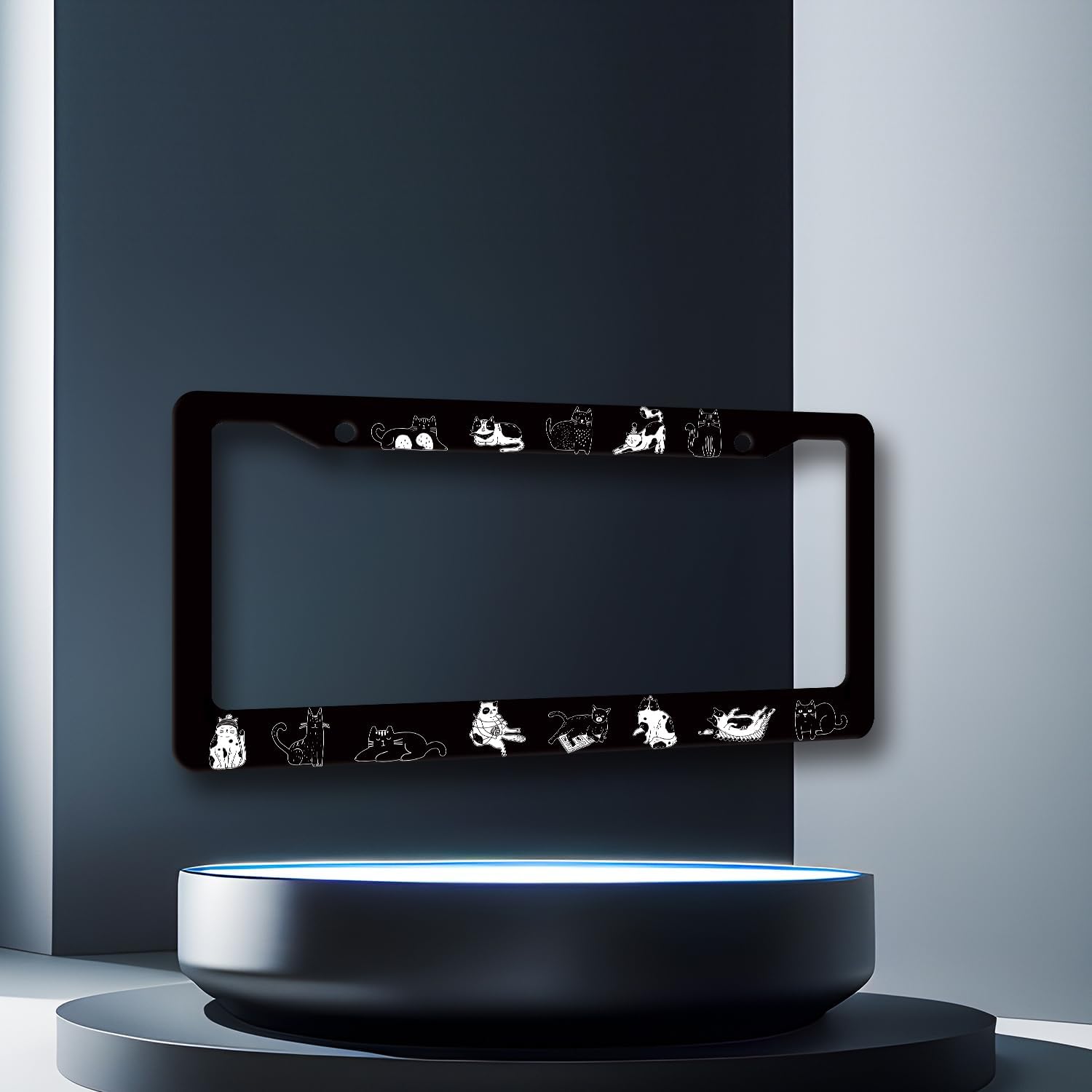 Cats License Plate Frame Cute Animal Cat License Plate Holder Stainless Steel Funny Design Compatible with Standard License Plate for USA Canada 12.3" x 6.3" with 2 Screws
