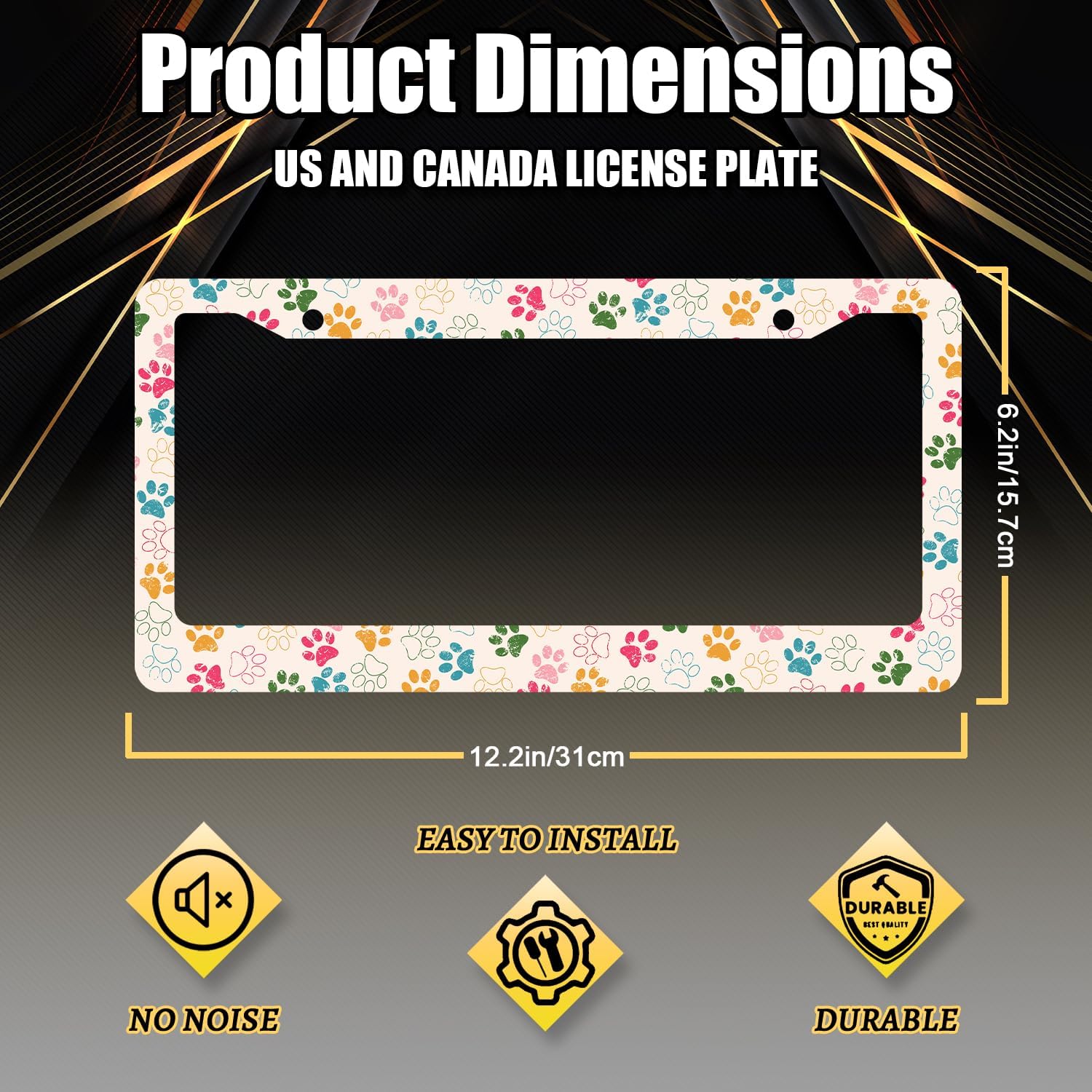 Colorful Dog Paws License Plate Frame Animal Dogs License Plate Holder Stainless Steel Funny Design with 2 Holes and Screws 12.3" x 6.3"