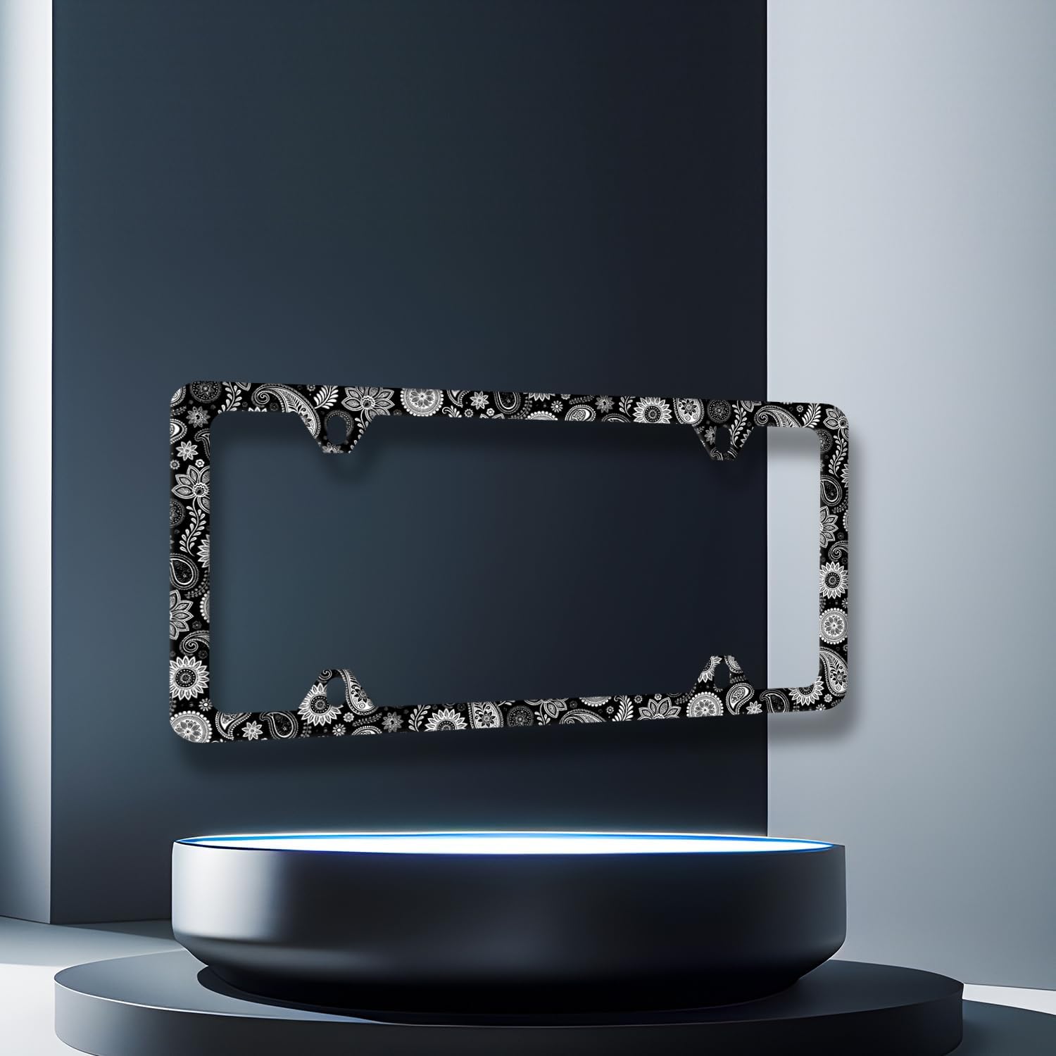 Black and White Paisley License Plate Frame Boho License Plate Holder Stainless Steel Funny Design with 4 Holes and Screws 12.3" x 6.3"