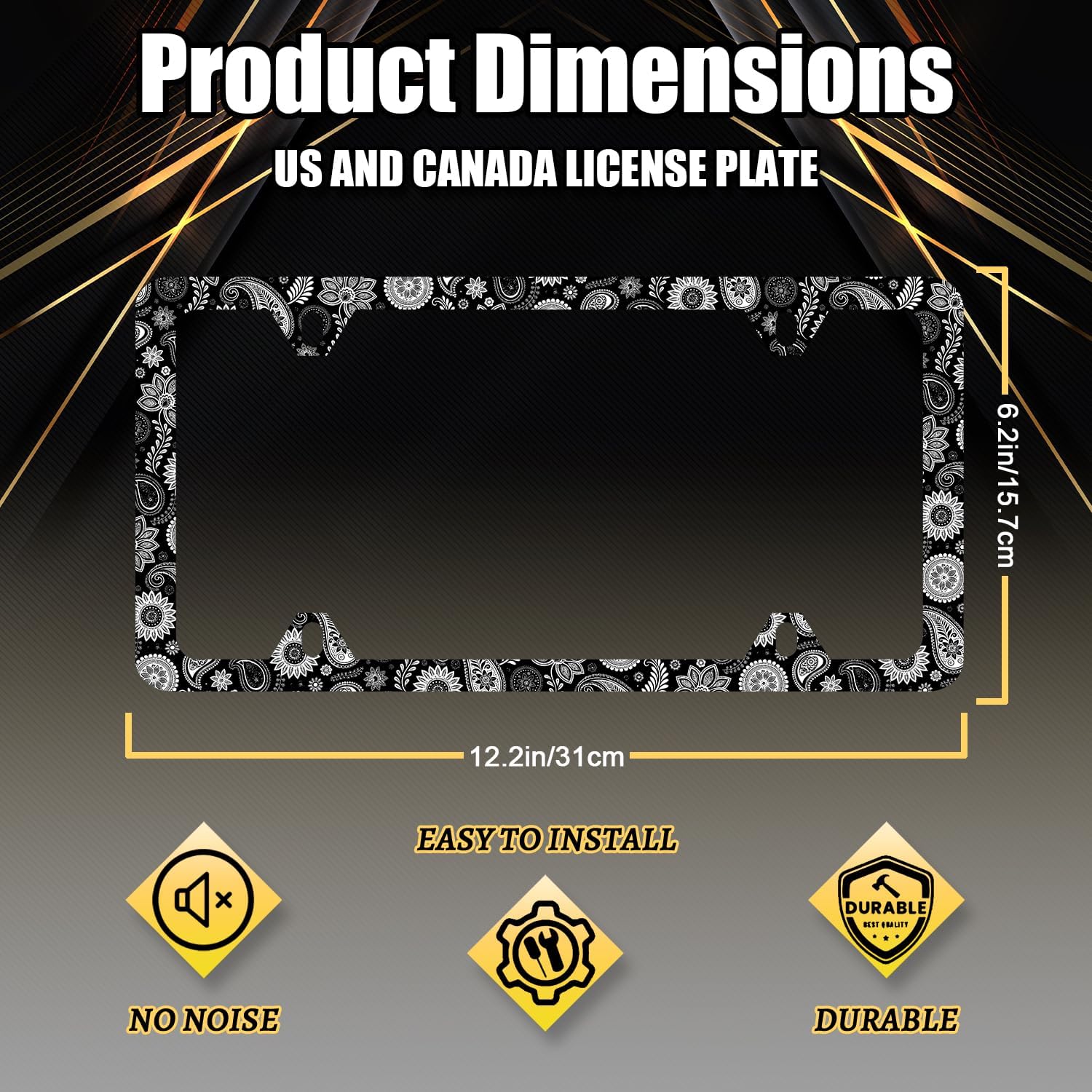 - Size: The size of the license plate frame is 12.3" x 6.3" , it fits all standard size US and Canada vehicle license plates.Fashion design frame fits perfectly on your car license plate.