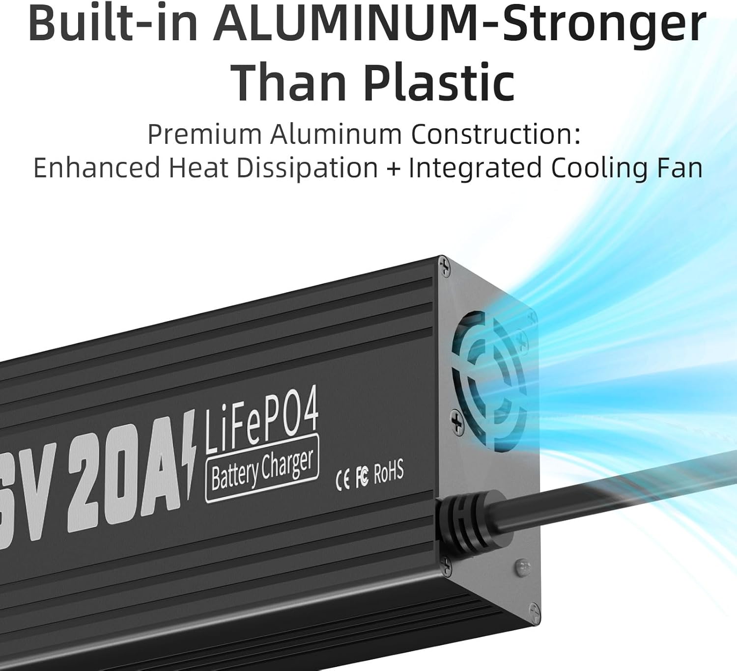 - 20A Rapid Charging: Delivers 50% charge in just 2.5 hours for 12V 100Ah batteries (2x faster than 10A chargers). Maintains stable 14.6V/20A output with built-in cooling fan, minimizing downtime for RVs, solar systems, and marine applications.