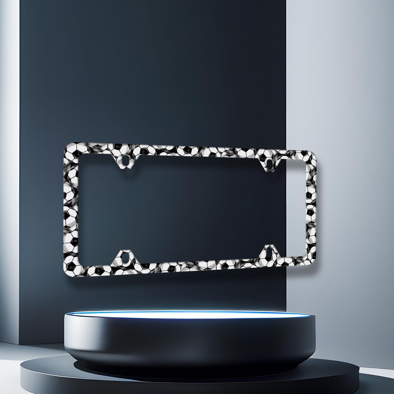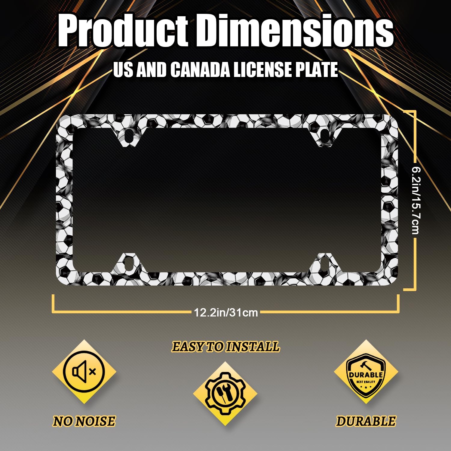 Soccer Ball License Plate Frame Football License Plate Holder Stainless Steel Funny License Plate for USA Canada 6.3" X 12.3" with 4 Holes and Screws