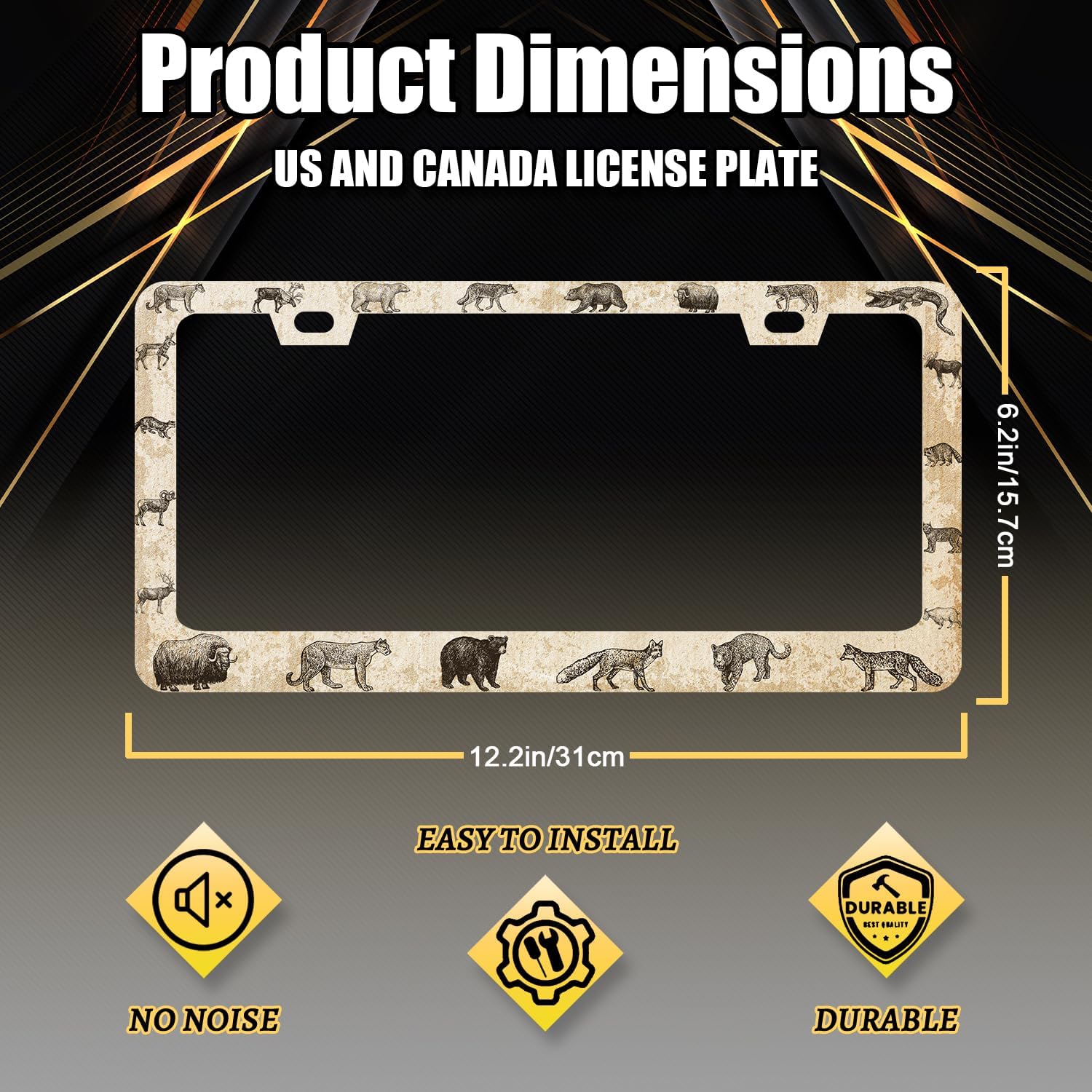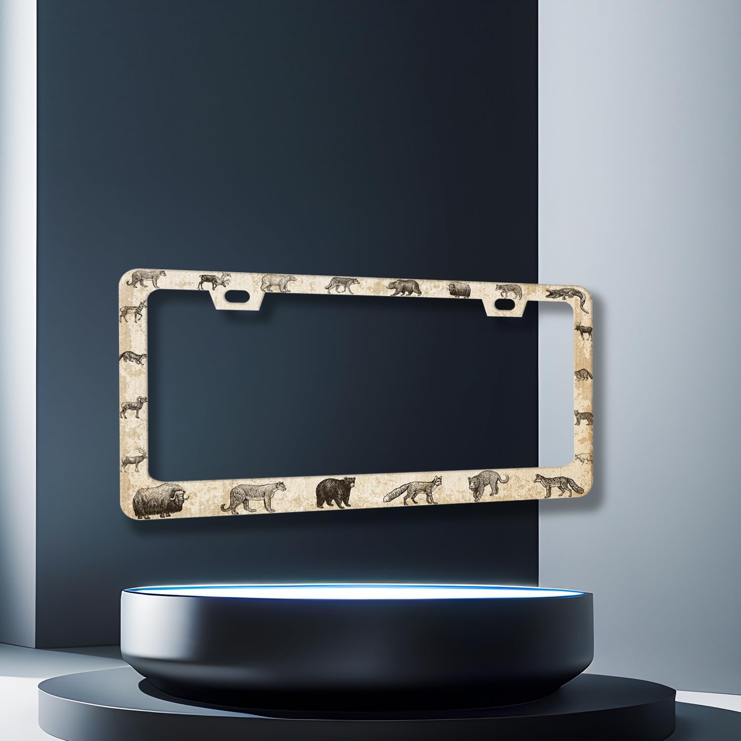 Vintage Animals License Plate Frame Animal Bear Tiger Wolf License Plate Holder Stainless Steel Funny License Plate for USA Canada 6.3" X 12.3" with 2 Holes and Screws
