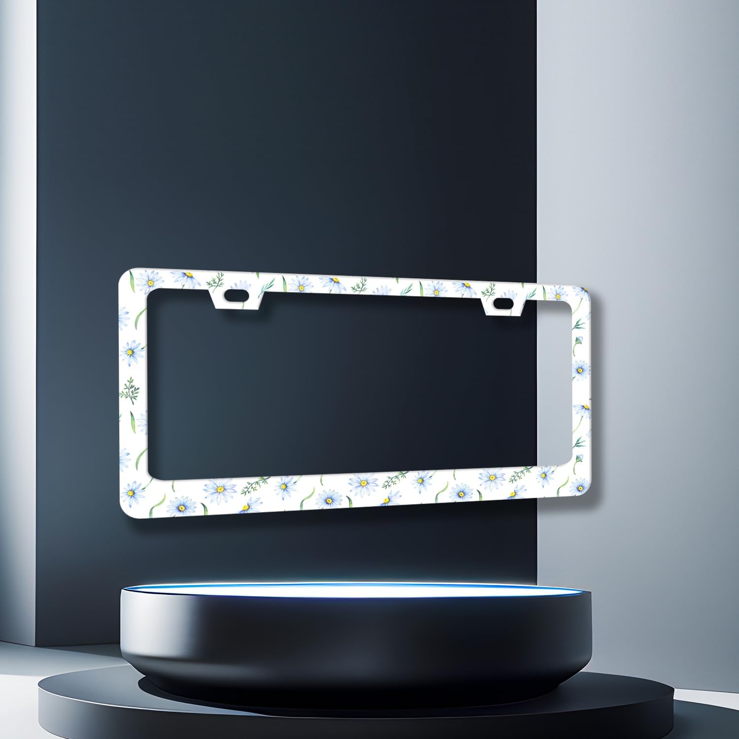 Cute Blue Daisy Flowers License Plate Frame Colorful Floral License Plate Holder Stainless Steel Colorful Car Accessories Decoration 6.3"X12.3" with 2 Holes Screws