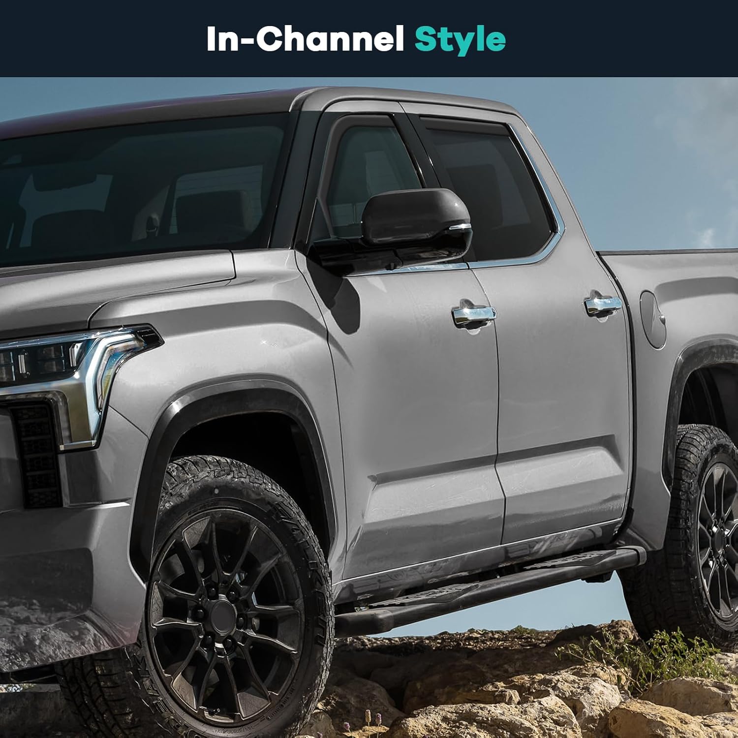 4PCS in Channel Rain Guards Fit for 2022 2023 2024 2025 Toyota Tundra Crew Max, Durable Side Wind Deflectors, Vent Window Visors Shades Shield