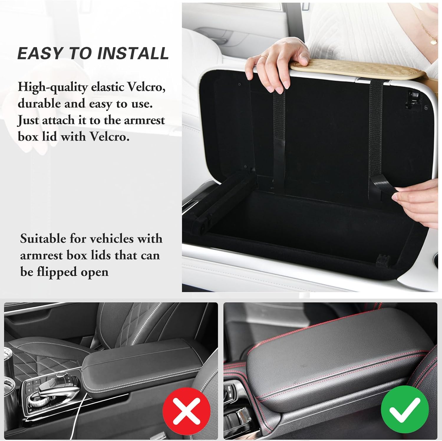 - Easy Installation: Simply lift your center console cover and use the Velcro on the bottom of the product to secure it to the cover. Installation is complete. If you encounter any issues during use, we are here to provide you with satisfactory after-sales service!