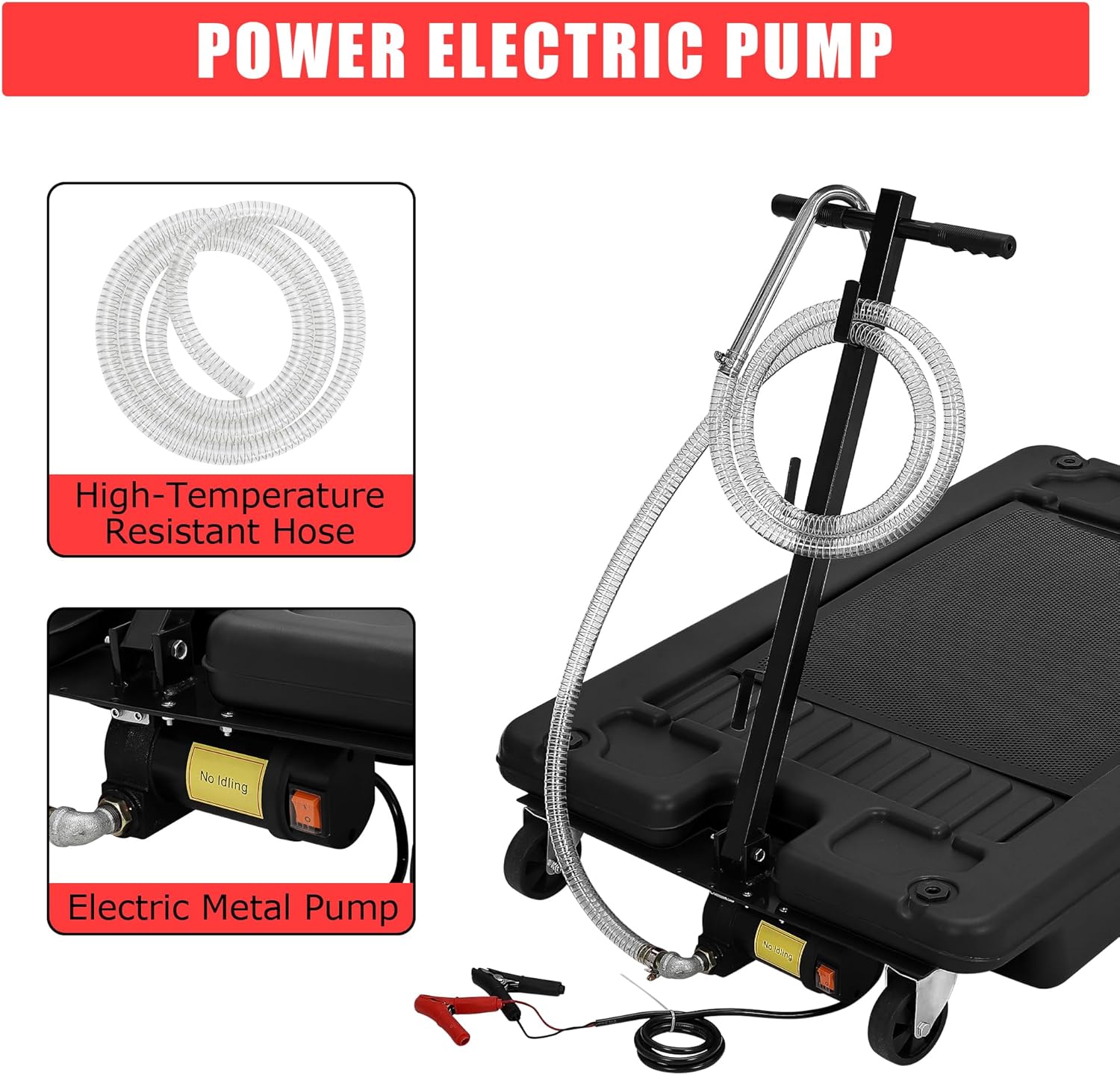- --Easy Oil Removal: Equipped with a powerful electric pump, this oil catch pan enables quick and controlled oil removal, minimizing manual effort and speeding up the oil change process for both professionals and DIYers