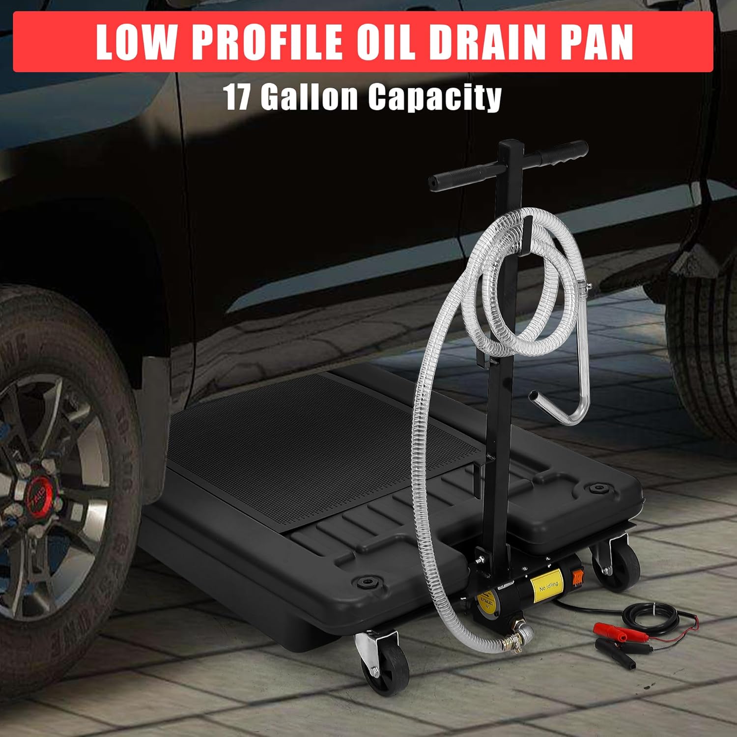 - --Generous Capacity: This low-profile oil drain pan holds up to 17 gallons, perfect for trucks, cars, motorcycles, and more. Its large size means fewer trips to empty, boosting efficiency whether you're working in a busy garage or at home