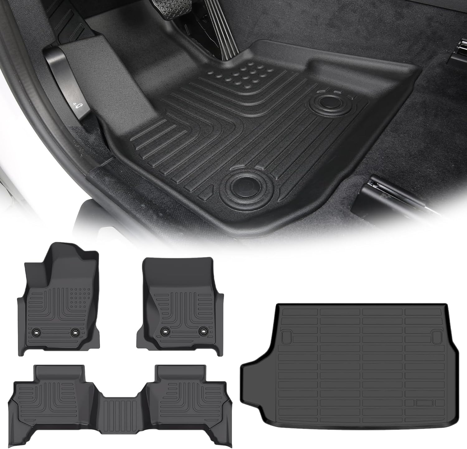 - Custom Fit: Floor mats fit for Toyota 4runner 2025. Includes 2 front floor mats & 1 rear floor mats & 1 cargo liner. If creases are caused by transportation, please put the mats in the sun for a while or blow them with a hair dryeries