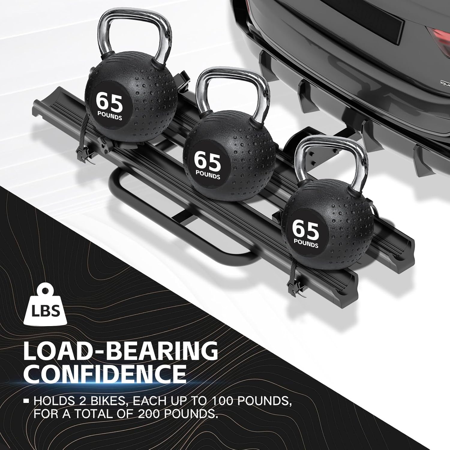 - 【Designed for Heavy-Duty Load Capacity】: This YZONA electric bike rack is constructed from heavy-duty steel and aluminum with a corrosion-resistant electronic coating. It's designed to hold 2 bikes, each weighing up to 100 pounds, for a total capacity of 200 pounds.
