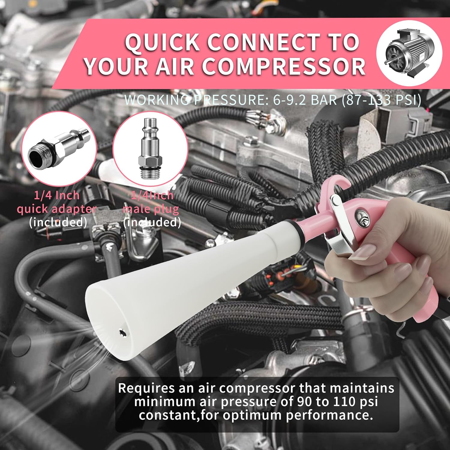 XIAOFENG Tornado Dry Cleaning Gun Detailing Interior Dryer Air Blow Gun with 2 Set Nozzle High Pressure Car Drying Blower Gun for Women Car Quickly Blasts Dirt and Dust from Surface Pink