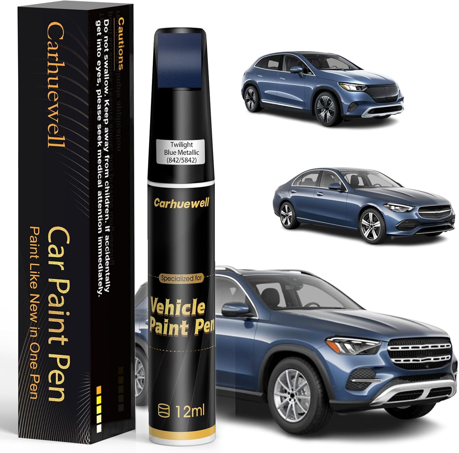 (842/5842) Twilight Blue Metallic Touch Up Paint Compatible with Mercedes-Benz, Exact Match Car Paint Pen Automotive Scratch Repair Remover Kit Quick & Easy Solution for Vehile Chips and Nicks
