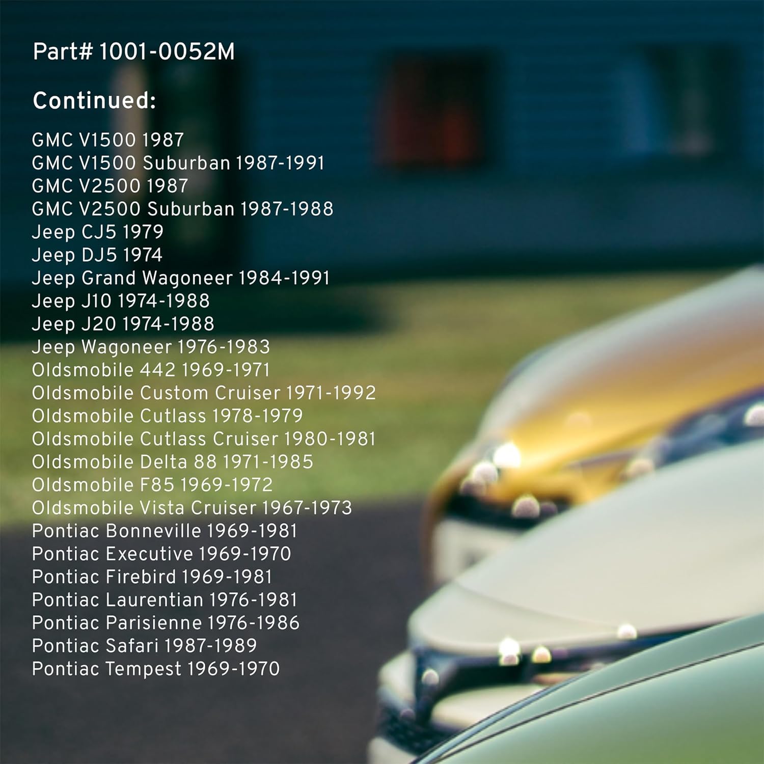 - FITMENT LIST: 1967-2002 JEEP BUICK CADILLAC CHEVROLET GMC OLDSMOBILE PONTIAC (1001-0052M) Verify Fitment using AmazonConfirmedFit tool.