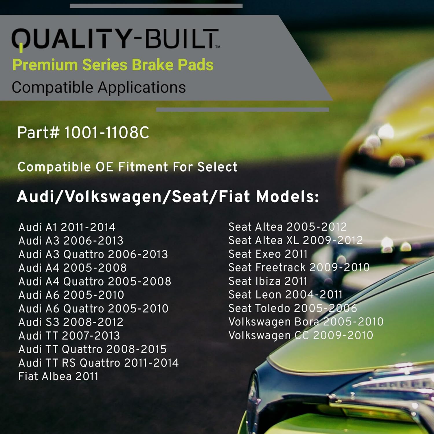 - FITMENT LIST: Select Models 2004-2018 AUDI/ VOLKSWAGEN/ SEAT/ FIAT (1001-1108C) Verify Fitment using AmazonConfirmedFit tool.