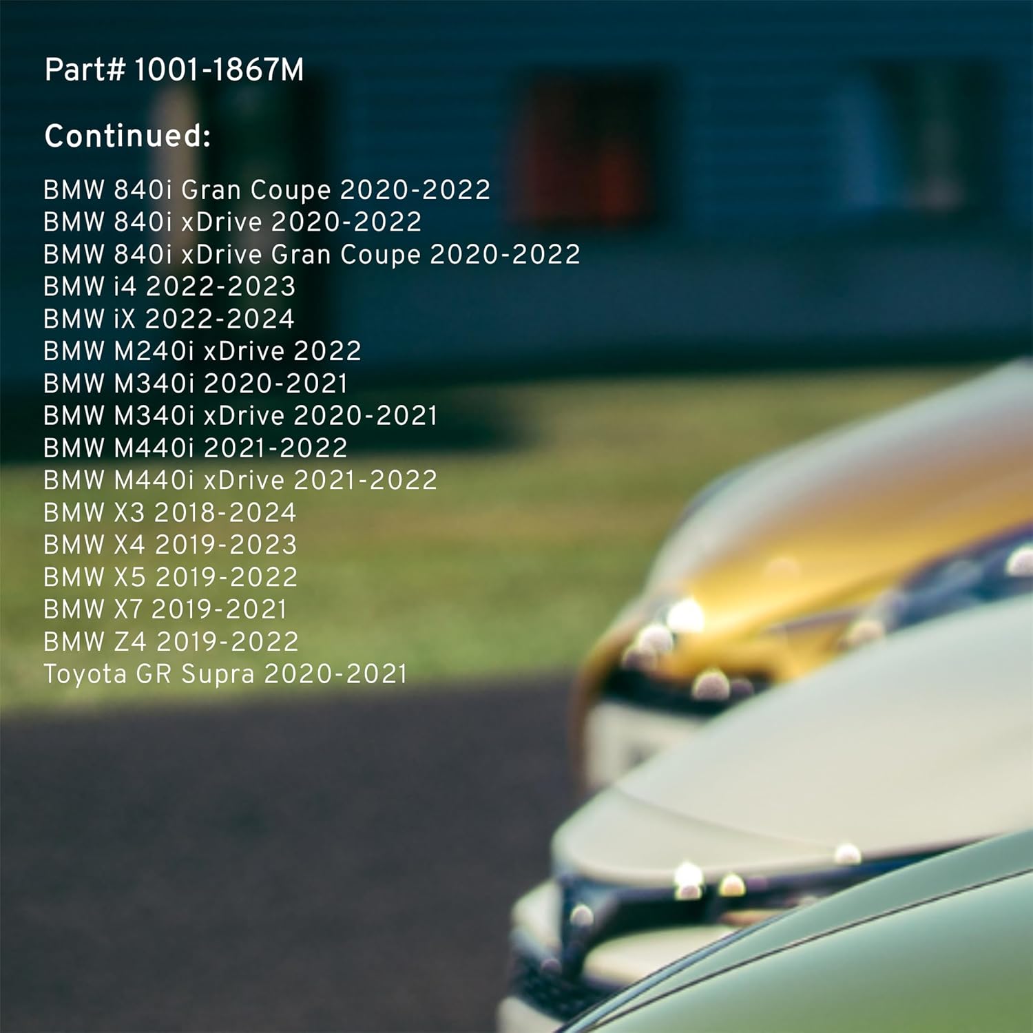 - FITMENT LIST: Select Models 2016-2024 BMW/ TOYOTA (1001-1867M) Verify Fitment using AmazonConfirmedFit tool.