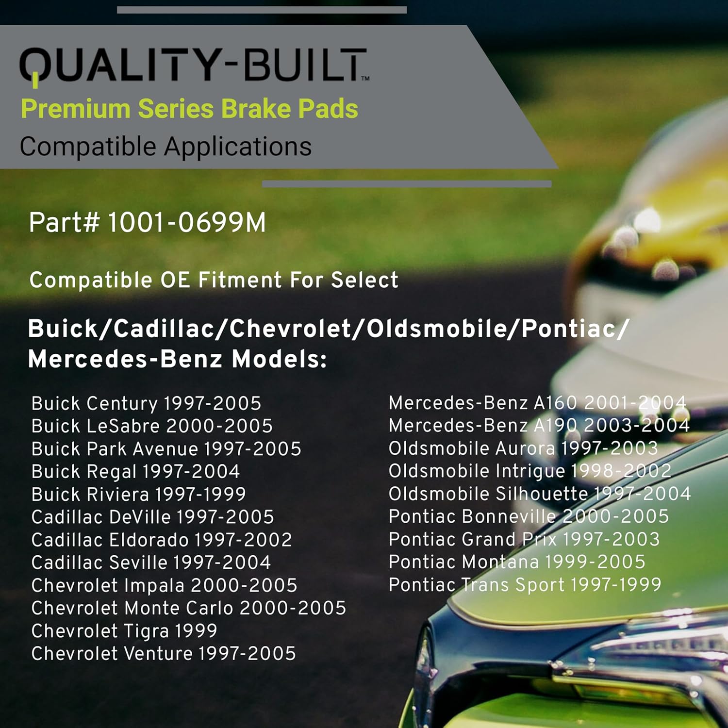 Premium Semi-Metallic Front Brake Pads (1001-0699M) Compatible with 1997-2005 Buick/Cadillac/Chevrolet/Mercedes-Benz/Pontiac (Bonneville/Century/DeVille/Eldorado/Grand Prix & More)