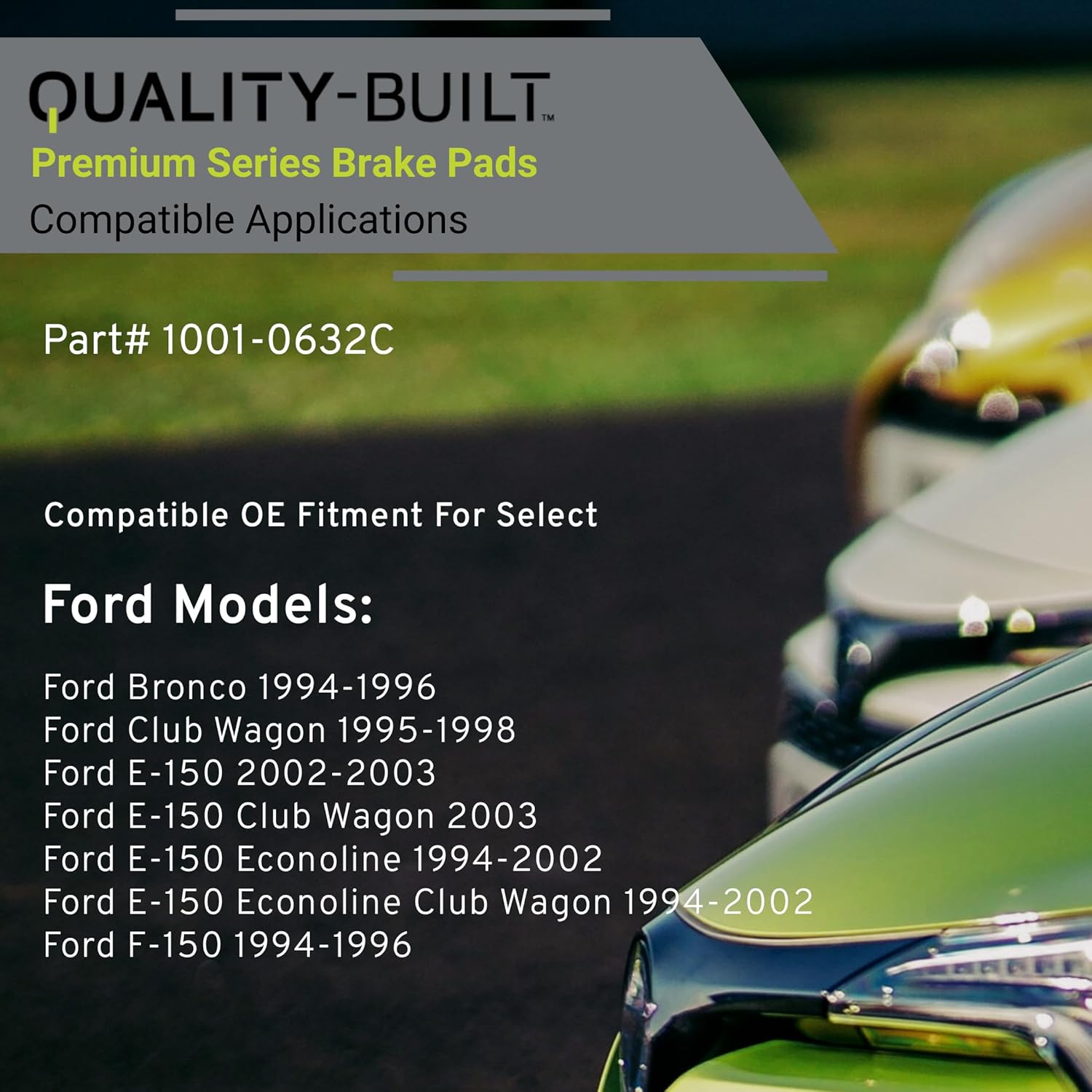 - VEHICLE FITMENT LIST: Ford Bronco 1996-1994, Club Wagon 1998-1995, E-150 2003-2002, E-150 Club Wagon 2003, E-150 Econoline 2002-1994, E-150 Econoline Club Wagon 2002-1994, F-150 1996-1994 (PART#1001-0632C)