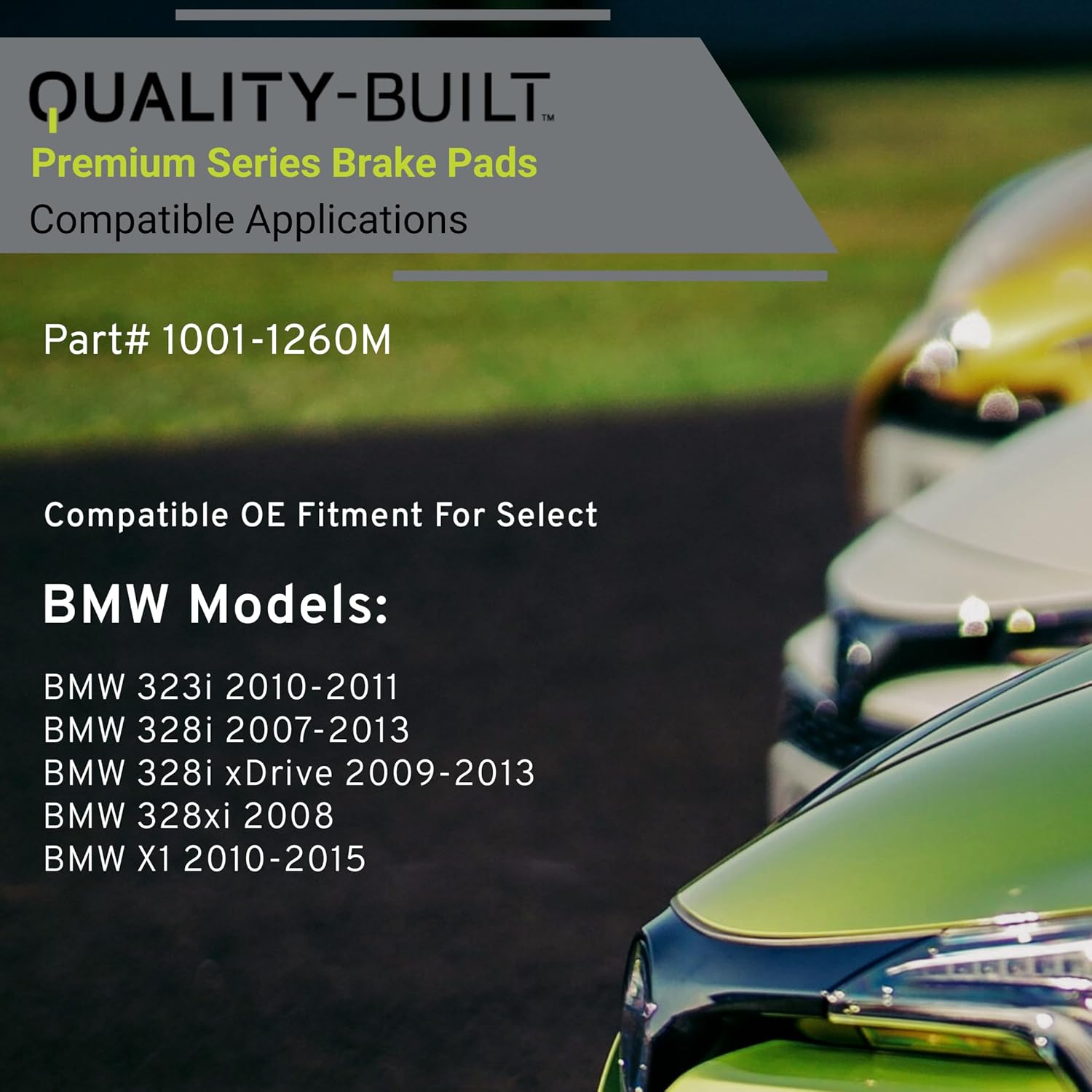 Premium Semi-Metallic Front Brake Pads (1001-1260M) Replacement for BMW 323i 2011-2010, 328i 2013-2007, 328i xDrive 2013-2009, 328xi 2008, X1 2010, X1 2015-2012
