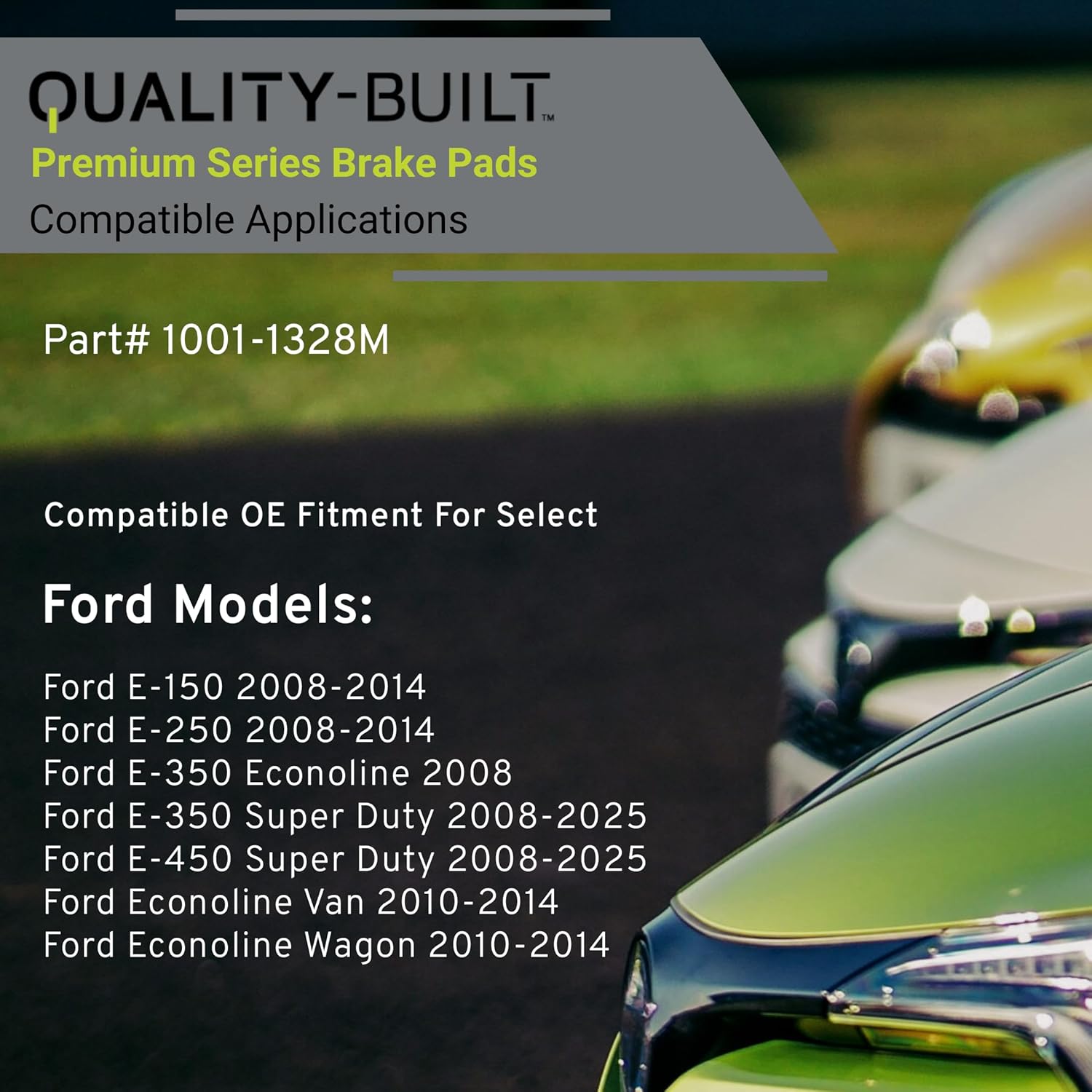 Premium Semi-Metallic Front Brake Pads (1001-1328M) Compatible with 2008-2025 Ford (E-150/E-250/E-350 Econoline/E-350 Super Duty/E-450 Super Duty/Econoline Van/Econoline Wagon)