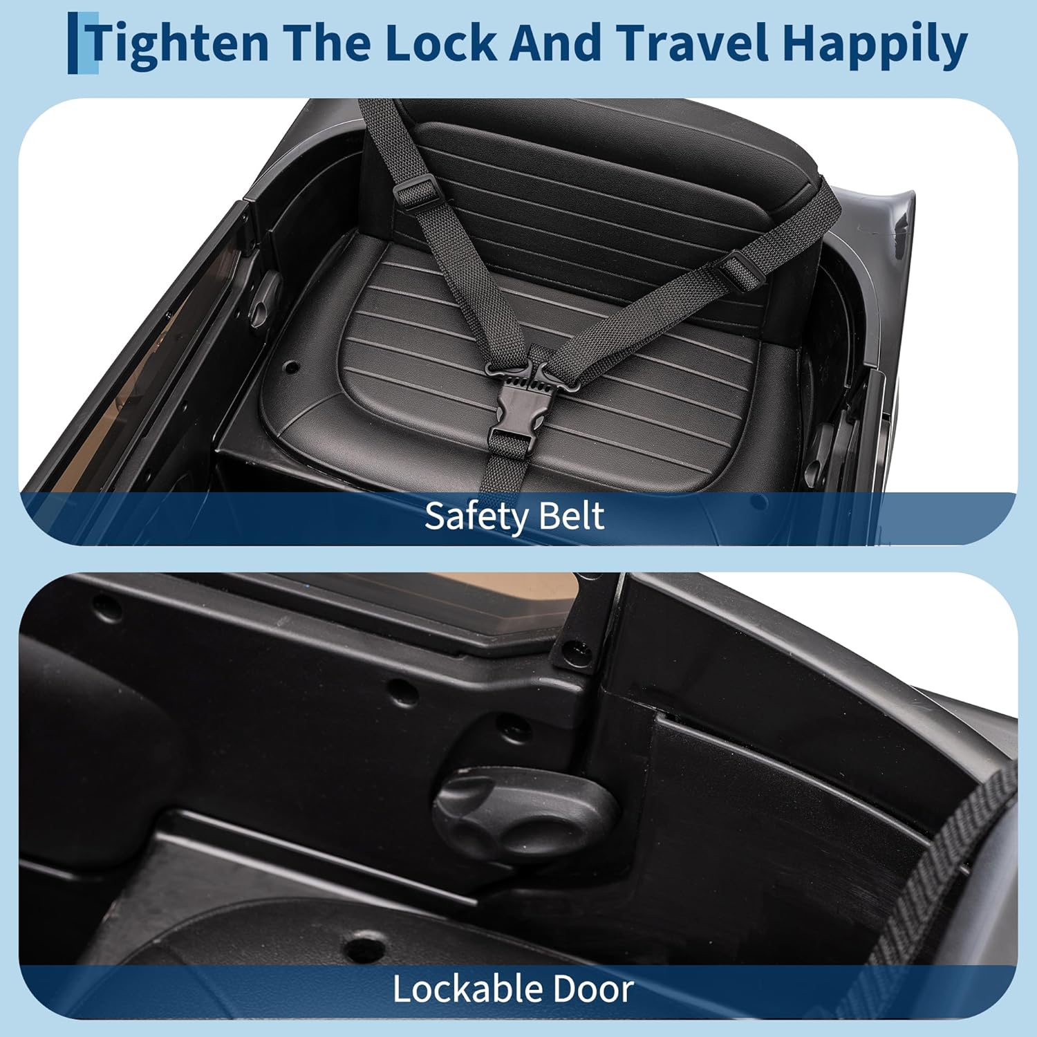 - Certified Safe Ride-On Car for Kids. This ASTM/CPSIA-certified electric vehicle delivers worry-free play with its comprehensive safety system: locking doors, 3-point safety harness, and shock-absorbing rear suspension. Designed to protect while delivering driving fun