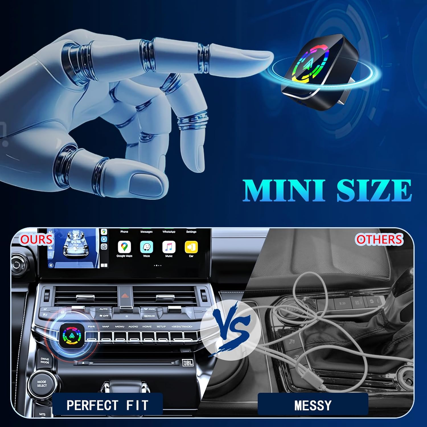 - 🎯【Ultra Mini Design, Free Up Your Car Space】 Featuring a revolutionary ultra-slim design that's 50% smaller than conventional adapters. Crafted with upgraded nano-composite materials, this feather-light yet durable carplay wireless adapter blends perfectly with any vehicle's interior while delivering truly seamless smart connectivity.