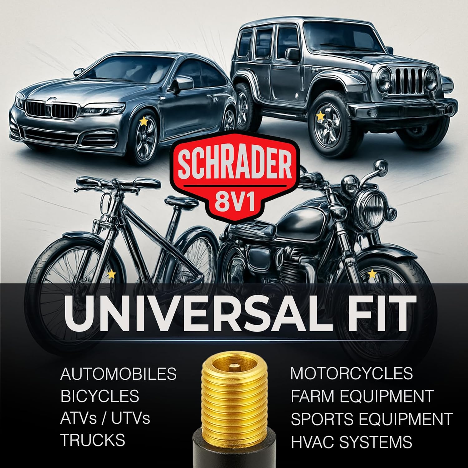 - Universal Schrader Valve Compatibility: Works seamlessly with most tire inflators, compressors, and air tools. Perfect for cars, bikes, motorcycles, RVs, trucks, ATVs, UTVs—anything with a standard Schrader valve.