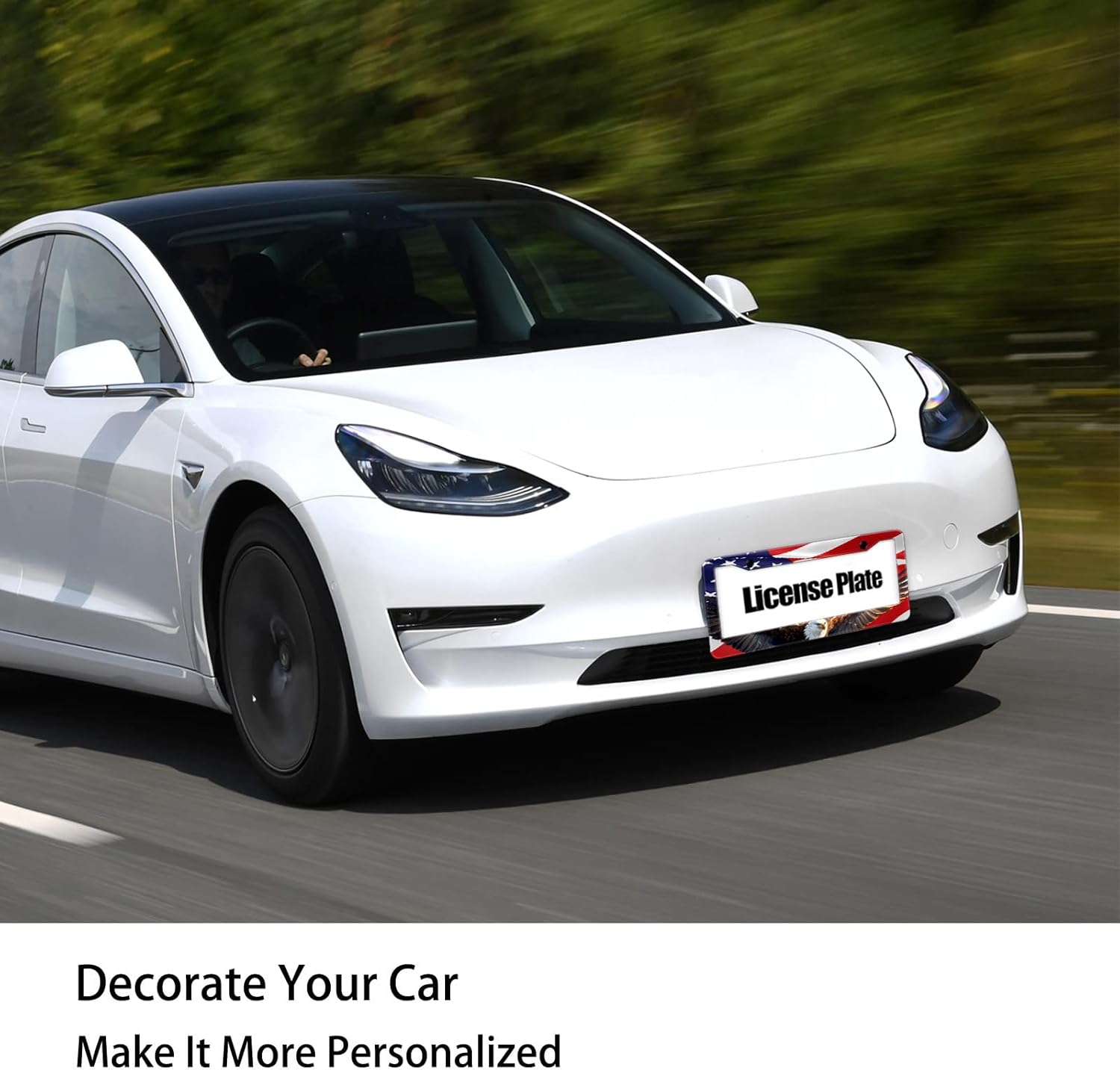 Eagle American Flag License Plate Frame, US Flag Car Tag Frame Holder Covers, Metal Aluminum Rustproof Car Accessories for Men Women 2 Holes with Screws