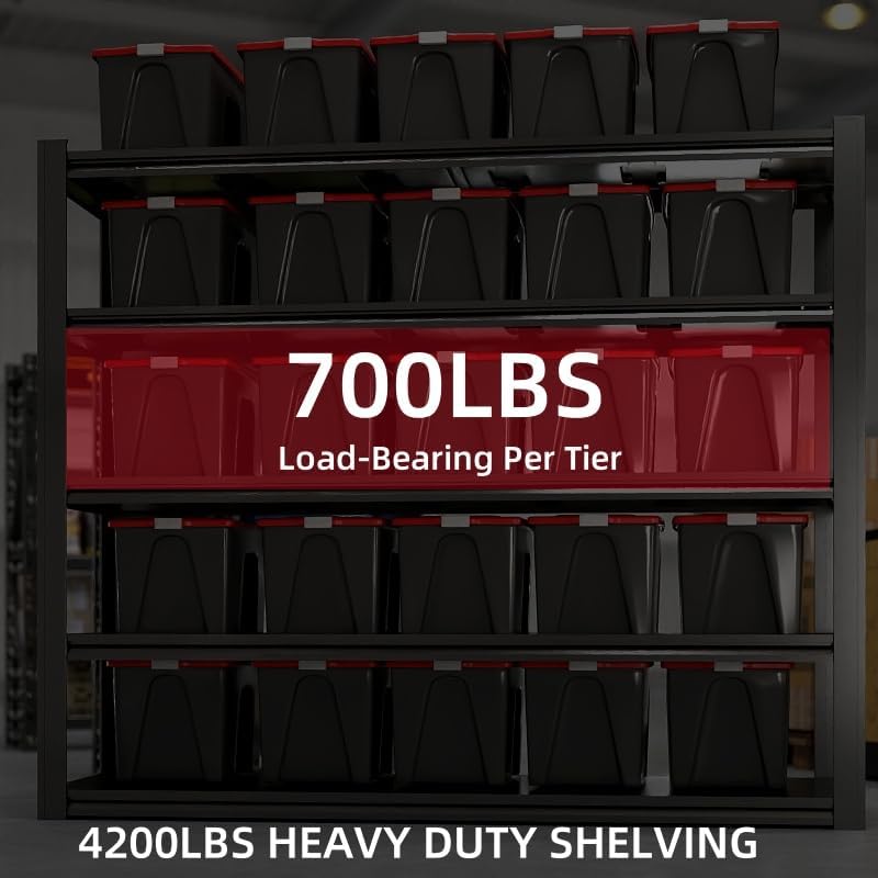 - 【4200LBS Capacity Heavy Duty Garage Shelves】LI JIU HOME's heavy duty garage shelving unit has thickened double metal legs. Made of high-quality metal, each solid thickened metal shelving with 9 big ribs beneath can hold up to 700 lbs, with a total bearing capacity of 4200 lbs, which makes industrial garage shelves heavy duty more stable and solid than normal metal shelves for storage and more stuff can be stored