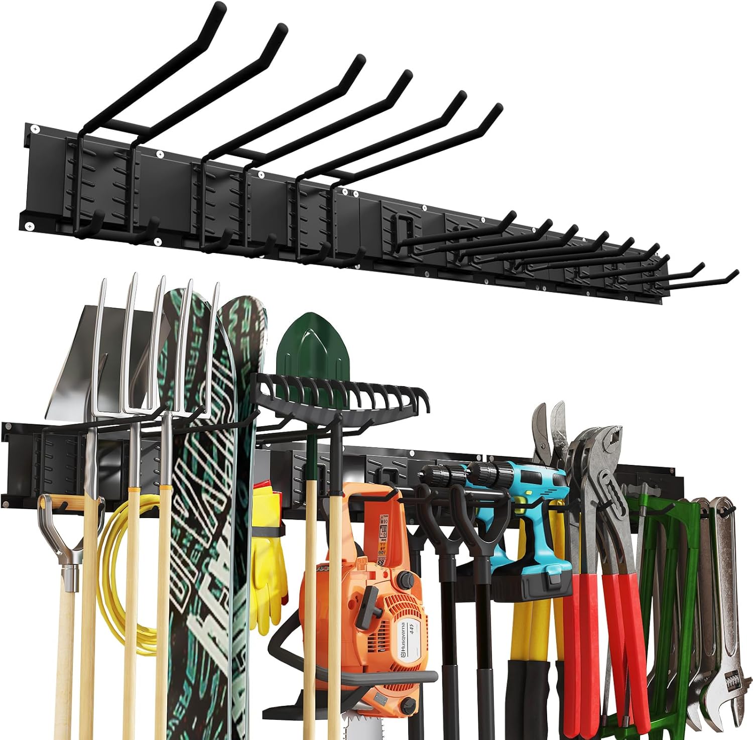 48 Inches Garage Organization,Wall Mount Garden Tool Organizer,660lbs Adjustable Heavy Duty Metal Hanging Hooks, Garden Tool Hangers Storage Rack for Garage, Yard, and Shed (3 Racks, 9 Hooks)