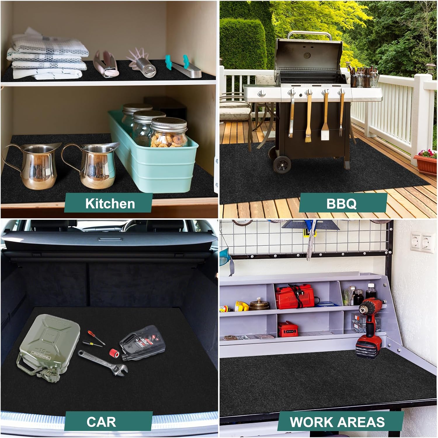 - Cut to Any Size: Our garage oil spill mats, sized at 60" x 72", are perfect for motorcycles, cars, garage floors. They can be easily cut to fit any space such as car trunks, cabinets, basements, deck patios, barbecue stall etc with scissors without fraying, allowing you to customize the shape to fit your specific garage space.