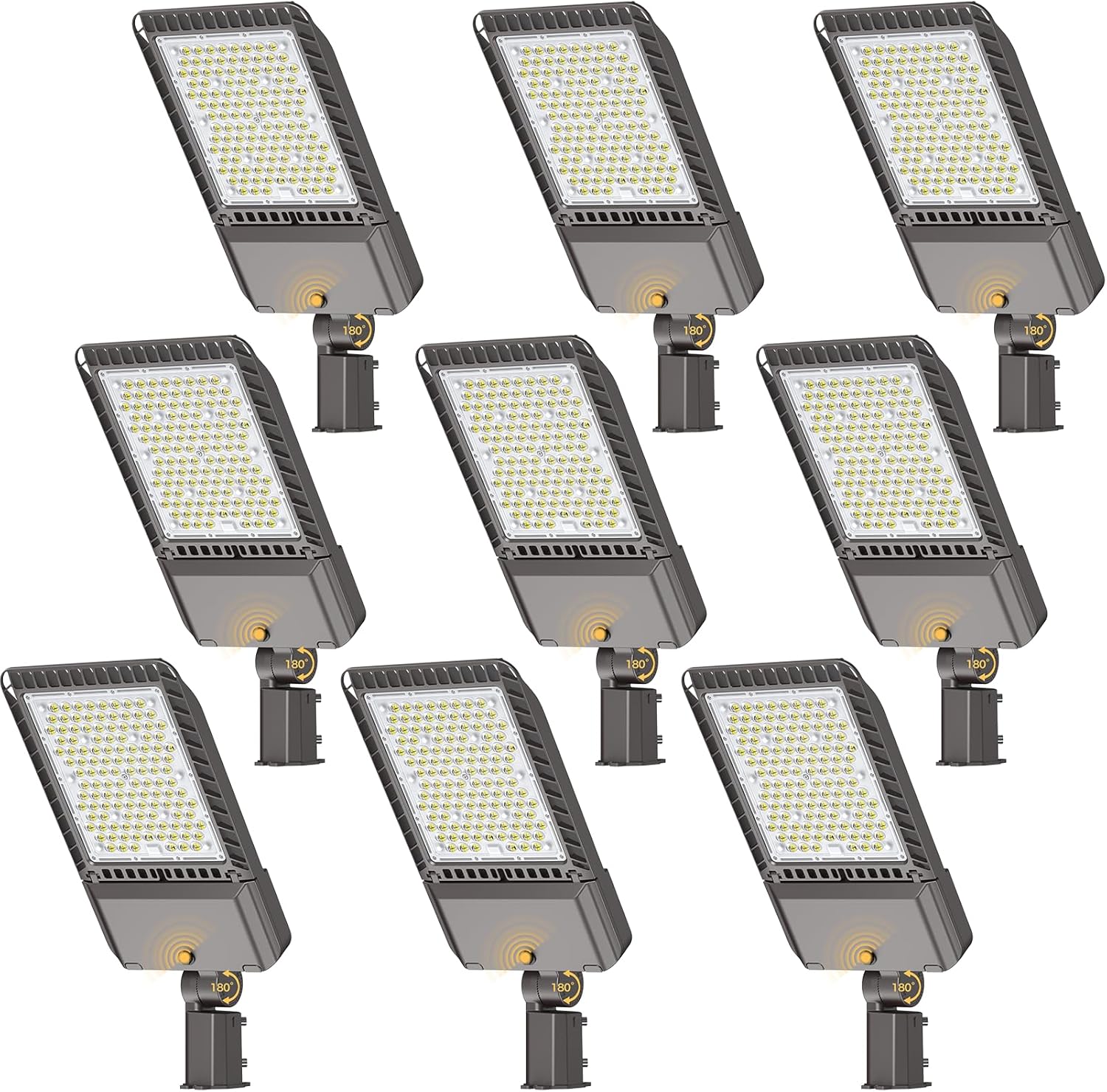 340W LED Parking lot Light Commercial Area Oudoor Lighting Street Light with Dusk to Dawn Photocell 61200Lm(180LM/W) 6000K IP65 Waterproof 100-277V for Driverway, Parking Lot 9 Pack