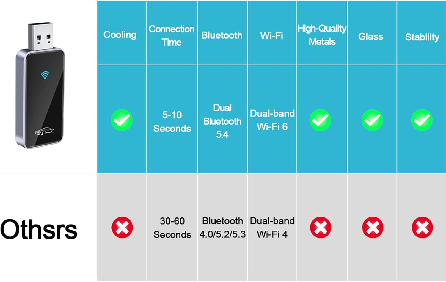 - Specific Uses For Product : Wireless Adapter Bluetooth 5.4 + Wi-Fi 6.0: Faster, Stable CarPlay Upgrade